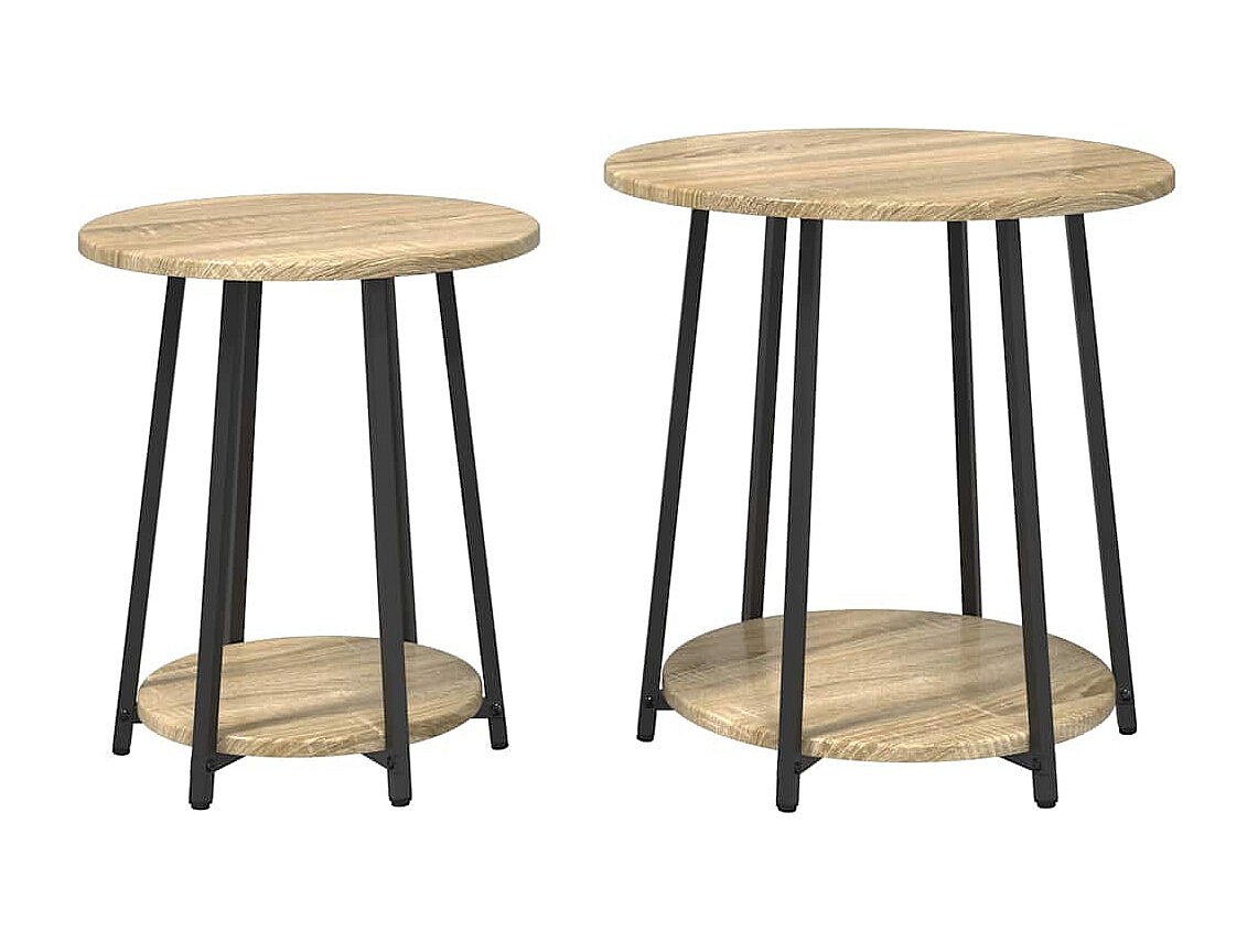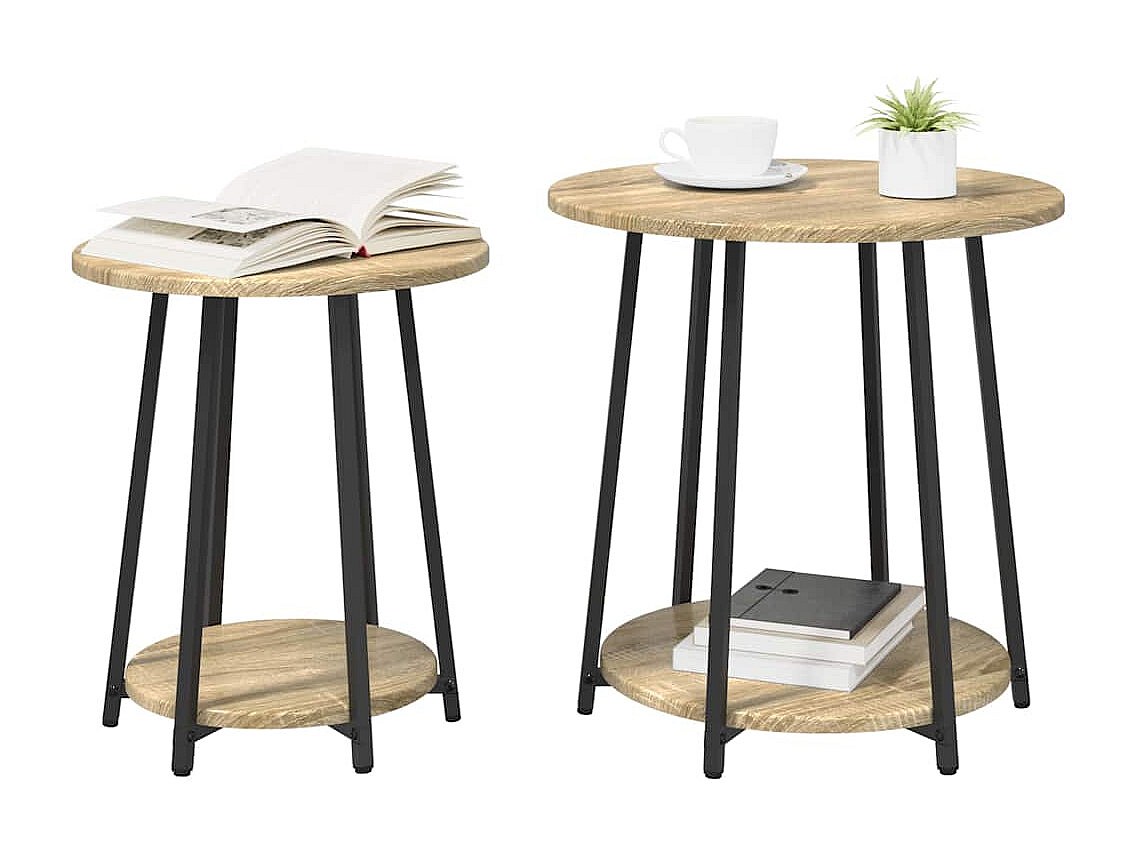 Set van 2 ronde salontafels, modern design, MDF, houtkleur (70 x 70 x 45 cm & 45,5 x 44 cm)