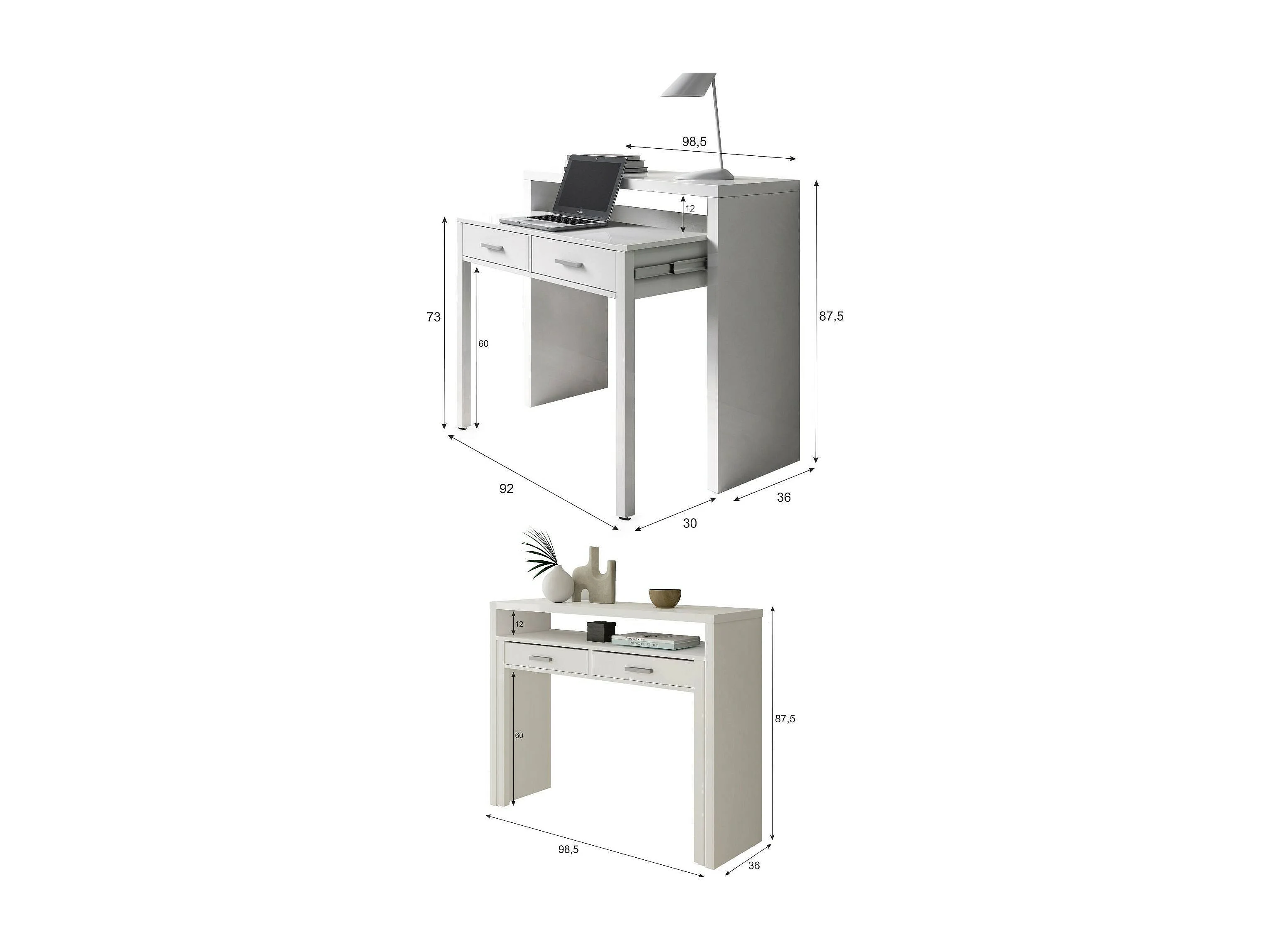 Billings Bureau, Bureau met uitschuifbaar blad, PC-bureau met 2 lades, 99x36h88 cm, Wit