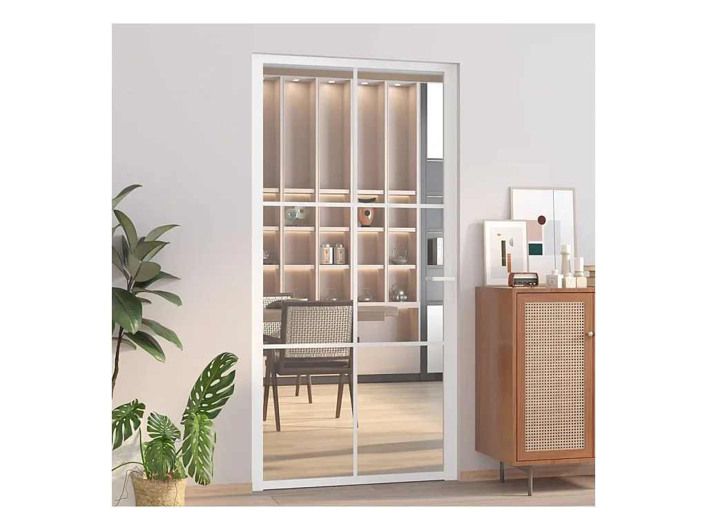 Binnendeur 93x201,5 cm gehard glas en aluminium smal wit BE229971