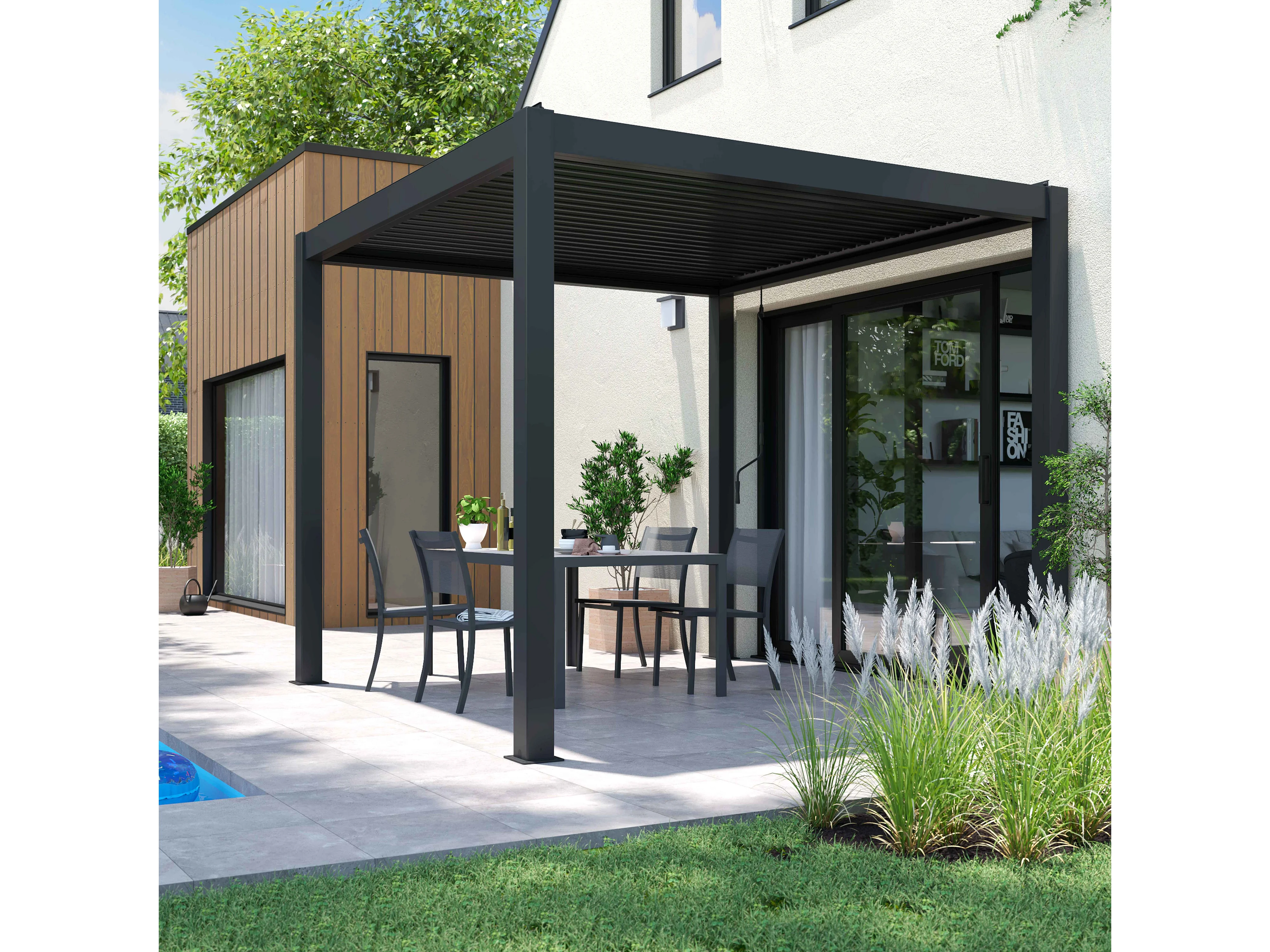 Bioklimatische pergola van 3x3m en 1 luifel van 2,66 x 2,34m