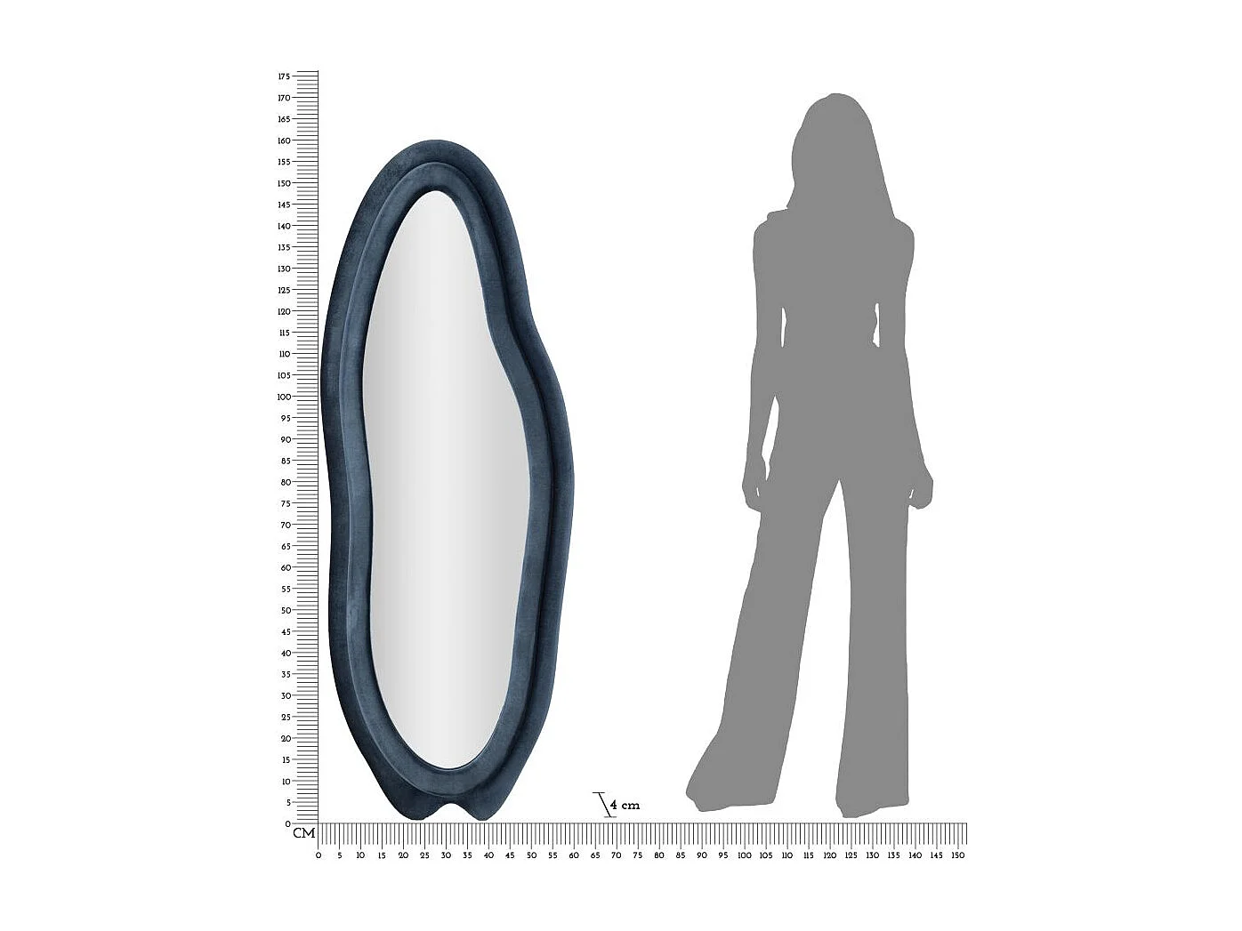 Blauwe fluwelen wandspiegel 60x4x160 cm.