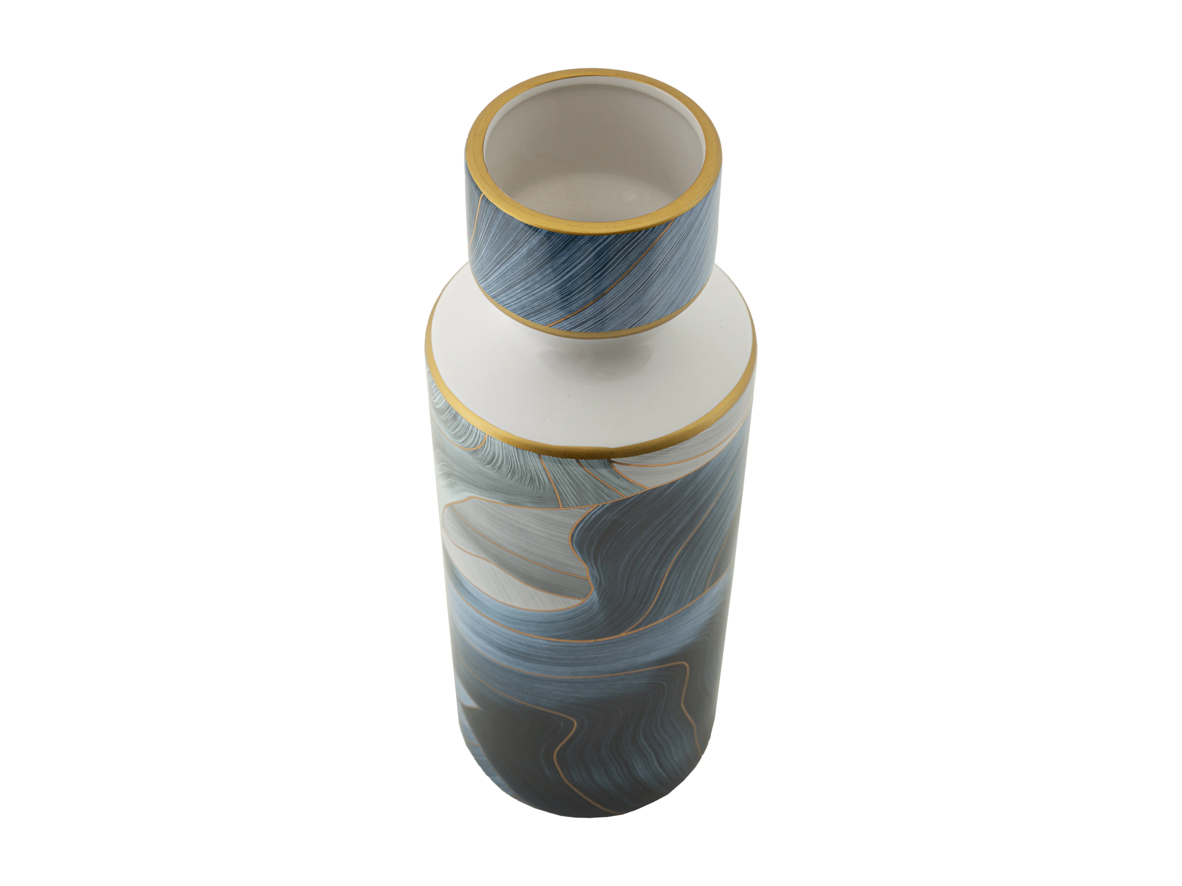 Blauwe keramische vaas met deksel Ø 14x40 cm
