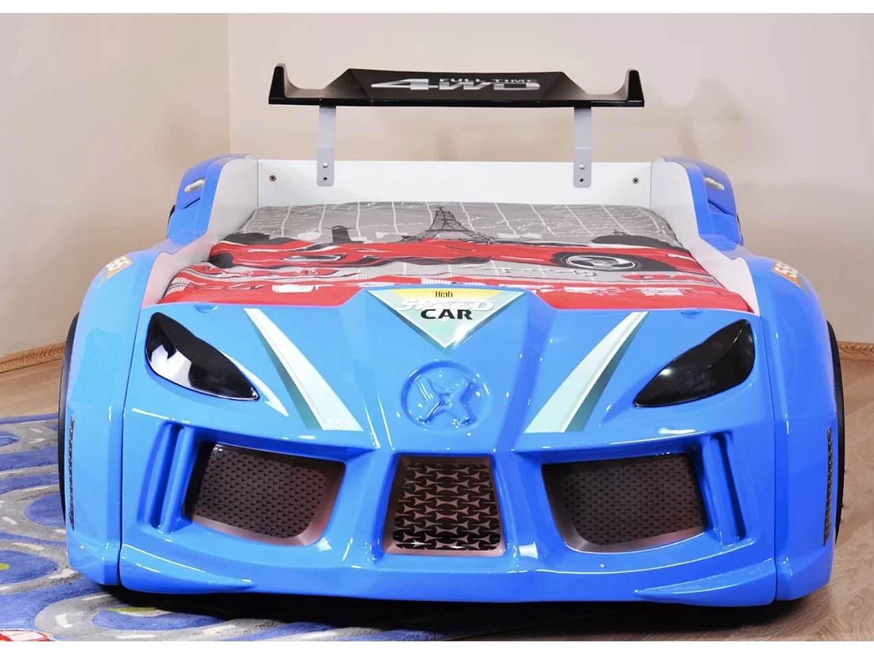Autobed TURBO V8 met LED-verlichting en geluidseffecten – 90 x 190 cm-Kleur Blauw