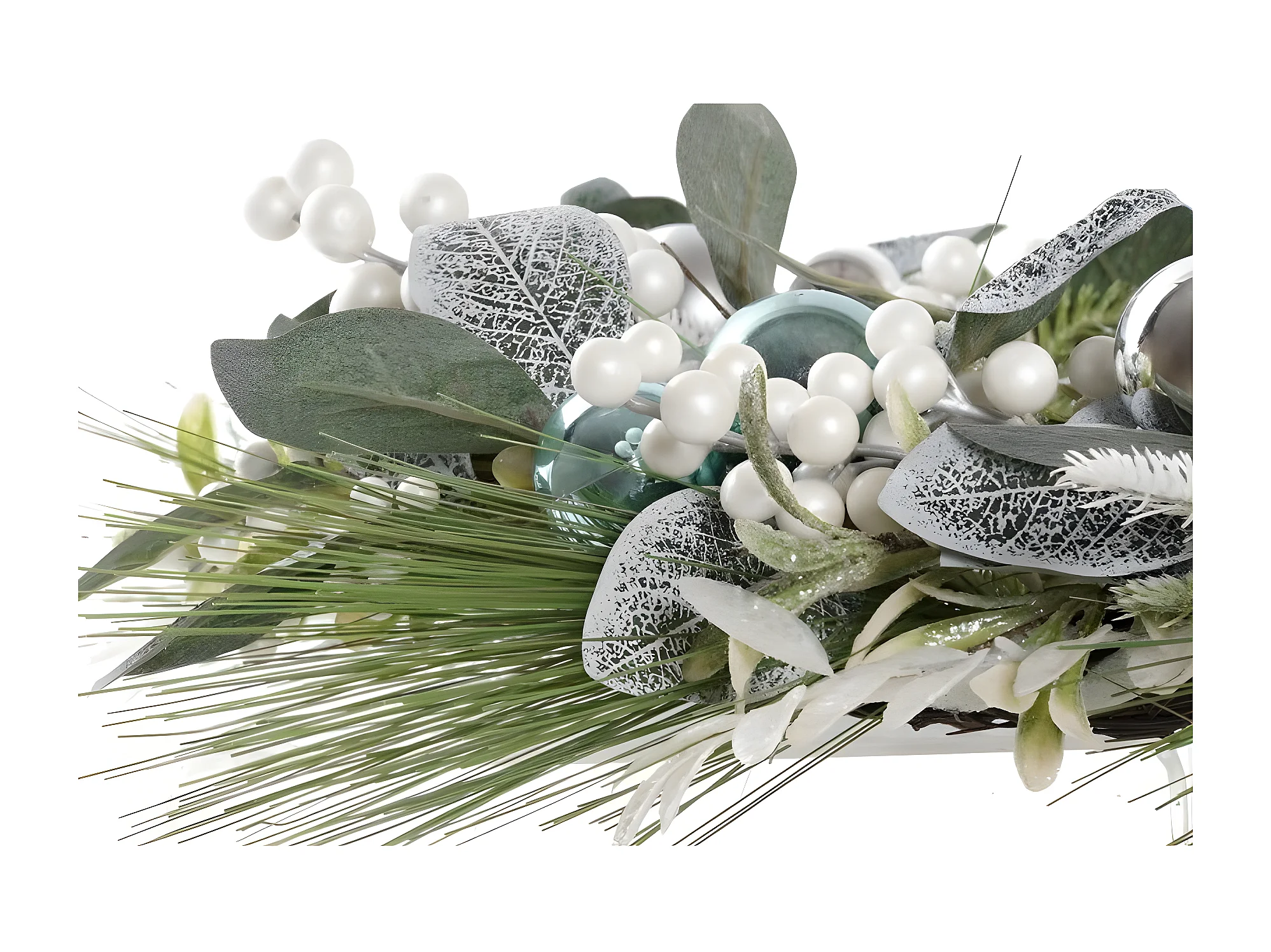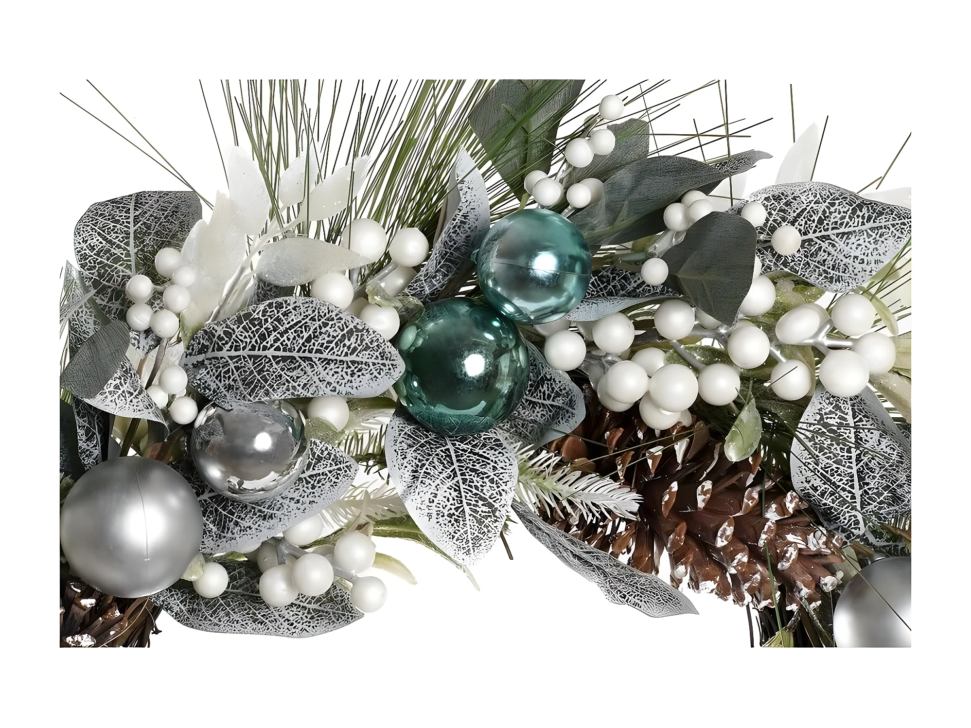 Blauwe zilveren kerstkrans van PVC en rotan 60x60x12 cm, originele feestelijke wanddecoratie