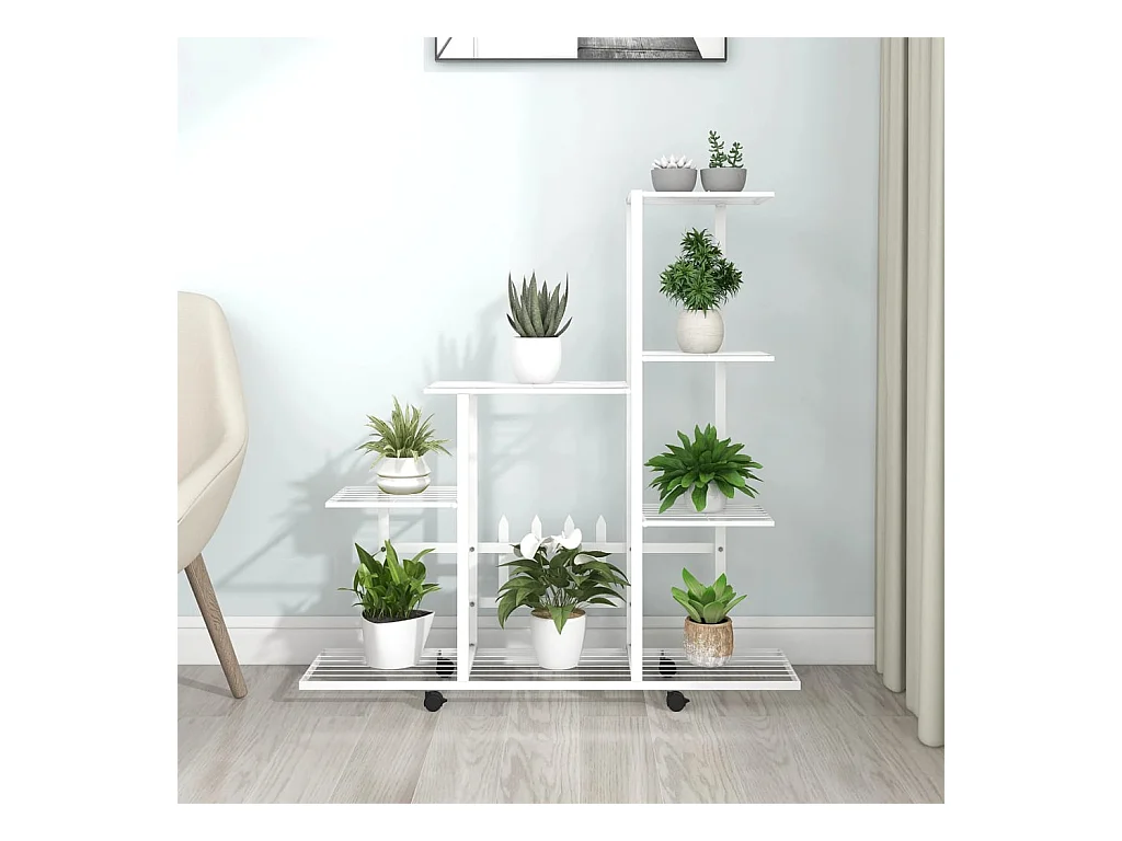 Bloemenstandaard met wielen 94,5x25x92,5 cm metaal wit NL474915