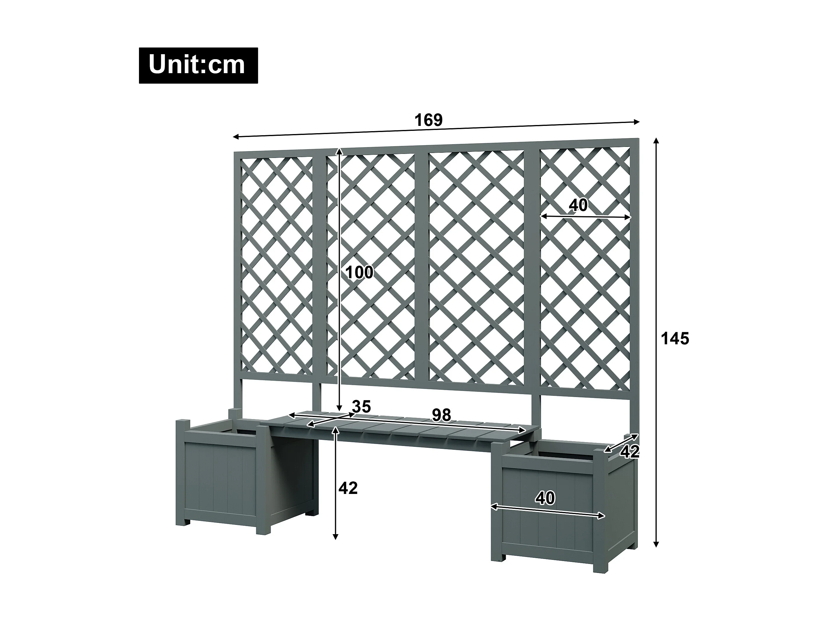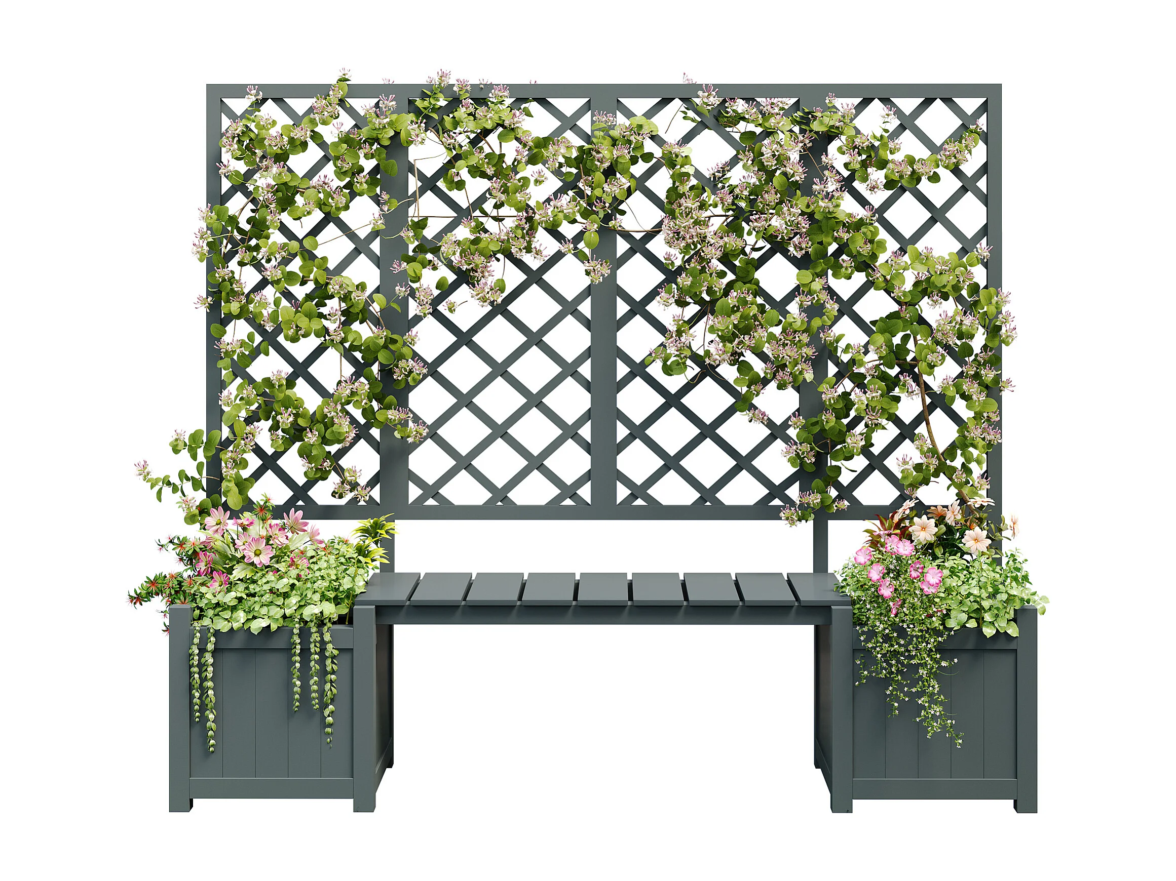 Bloempot met raster als - bloempot voor bloemen - bloempot - bloempot van massief sparrenhout - met raster en zitplaats - groen