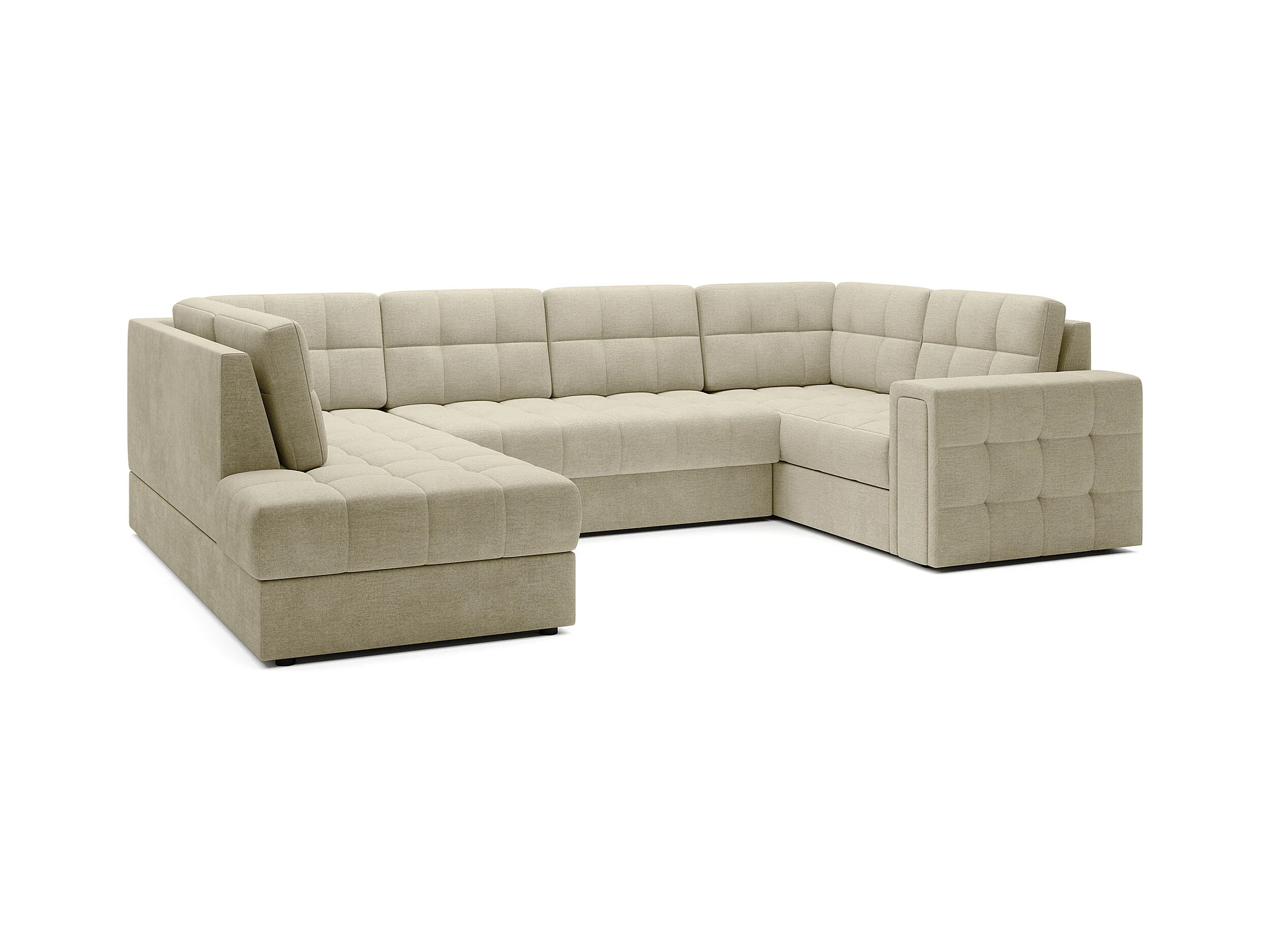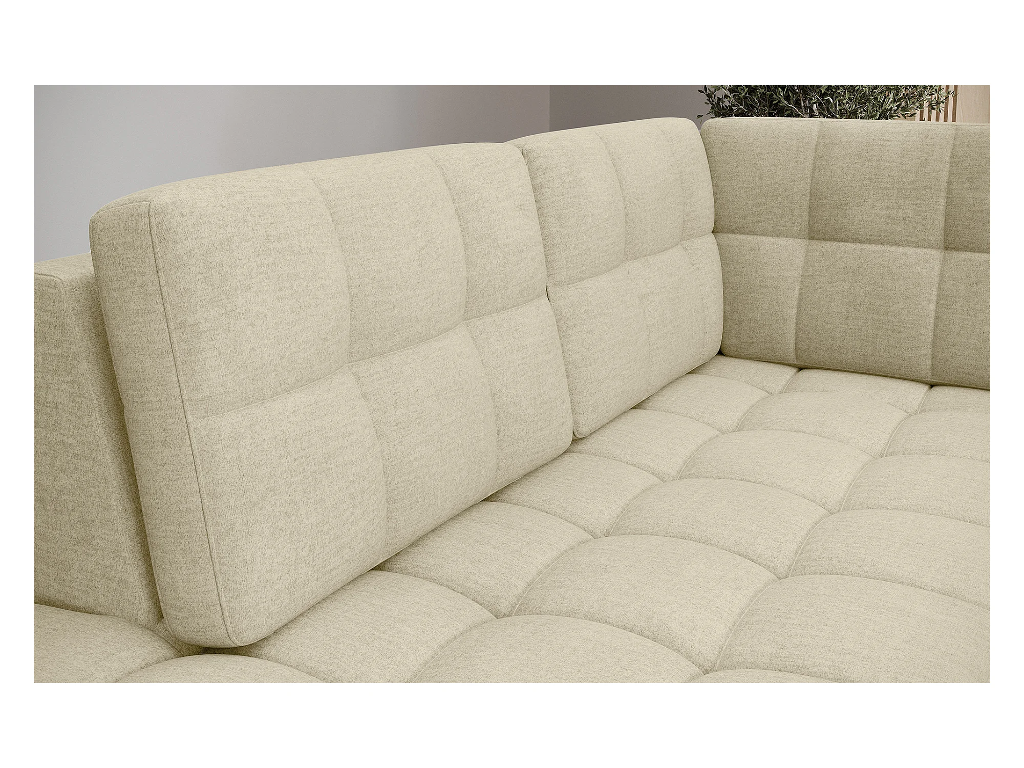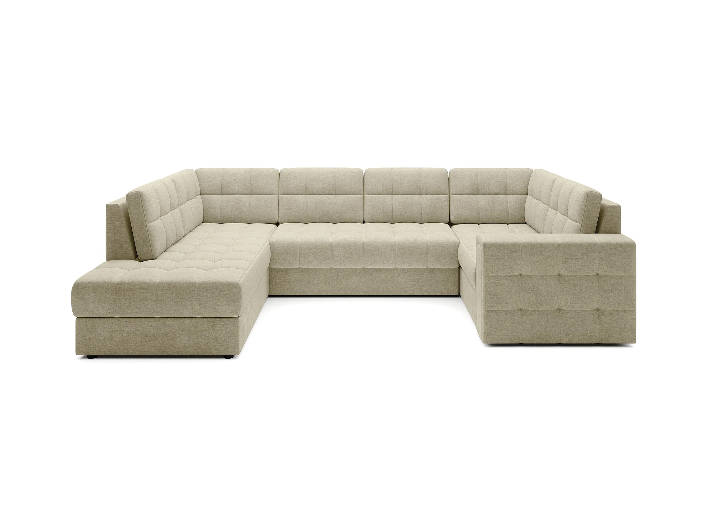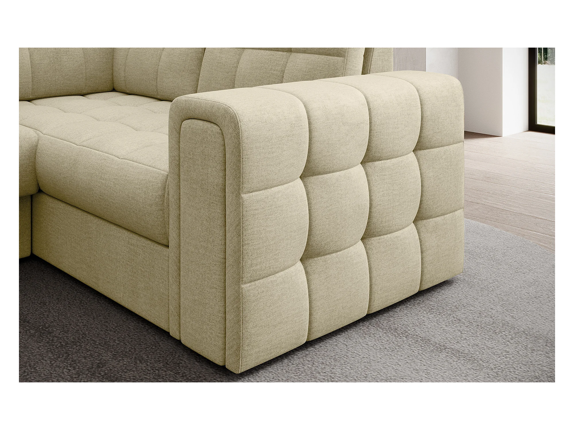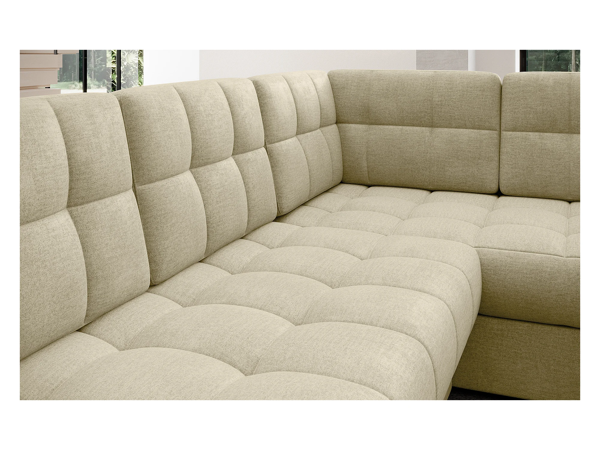 BLOOM panoramische bank in gecapitonneerd fluweel - Opbergruimte en omvormbaar-Kleur Licht beige-Opslagruimte naar links