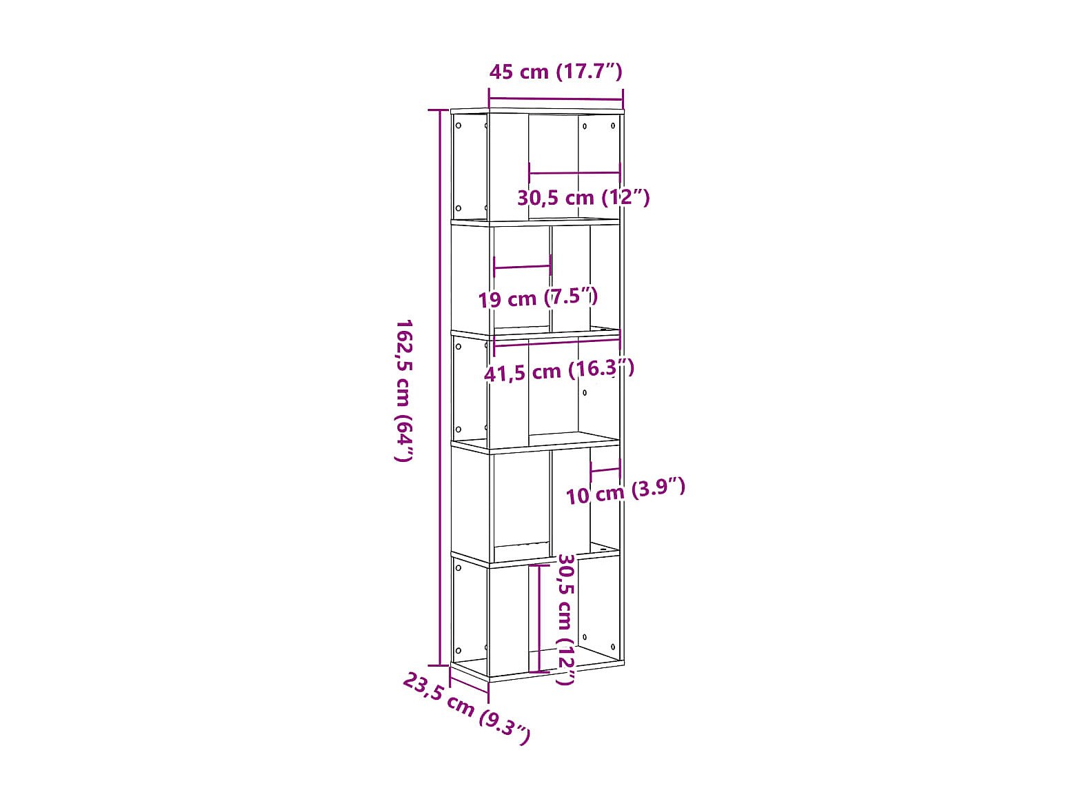 Boekenkast 5-laags 45x23,5x162,5 cm hout artisanaal eikenkleur