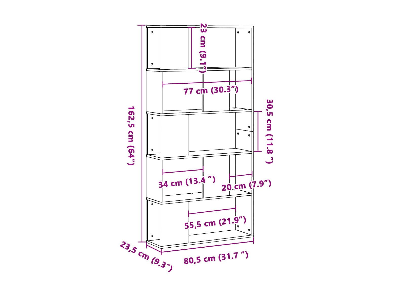 Boekenkast 5-laags 80,5x23,5x162,5 cm bewerkt hout sonoma eiken