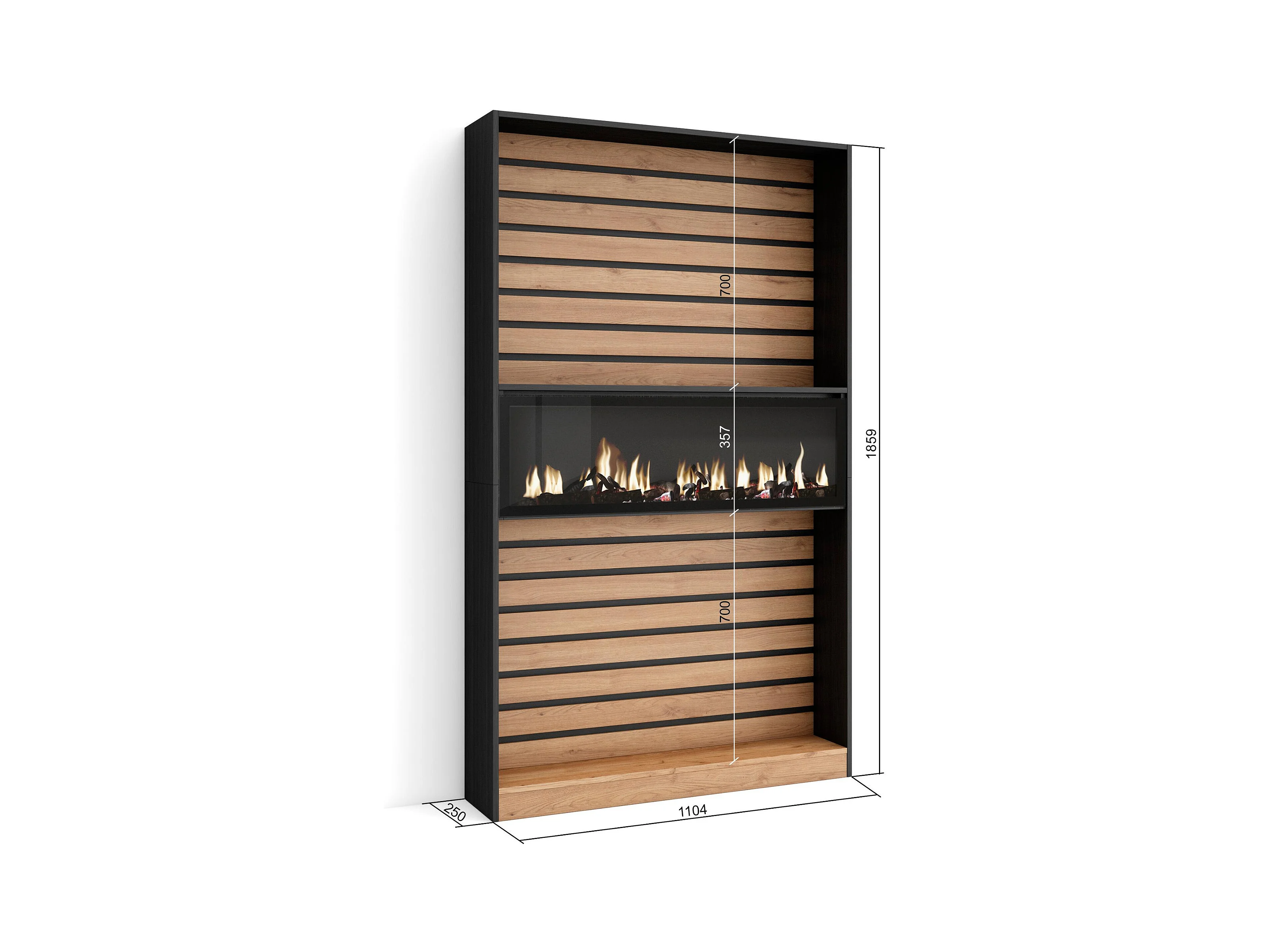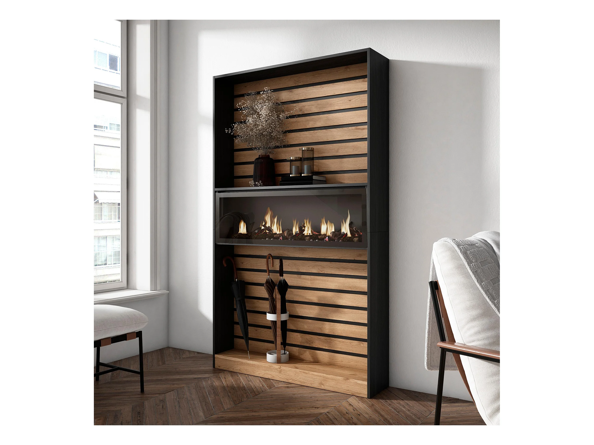 Boekenkast, Boekenplank, 230x25x186cm, Woonkamer, Eetkamer, Bureau, Elektrische haard, Eiken/Zwart