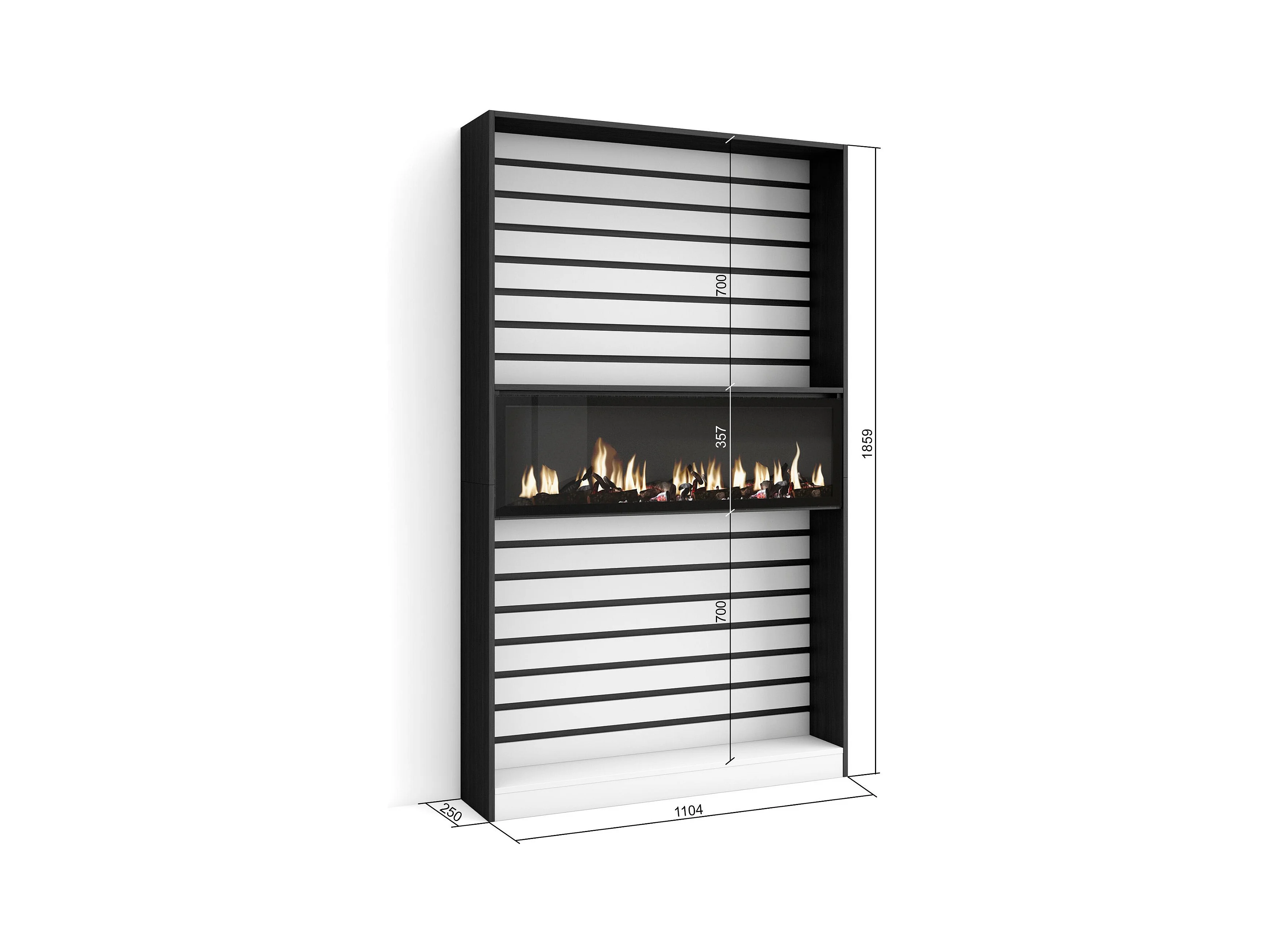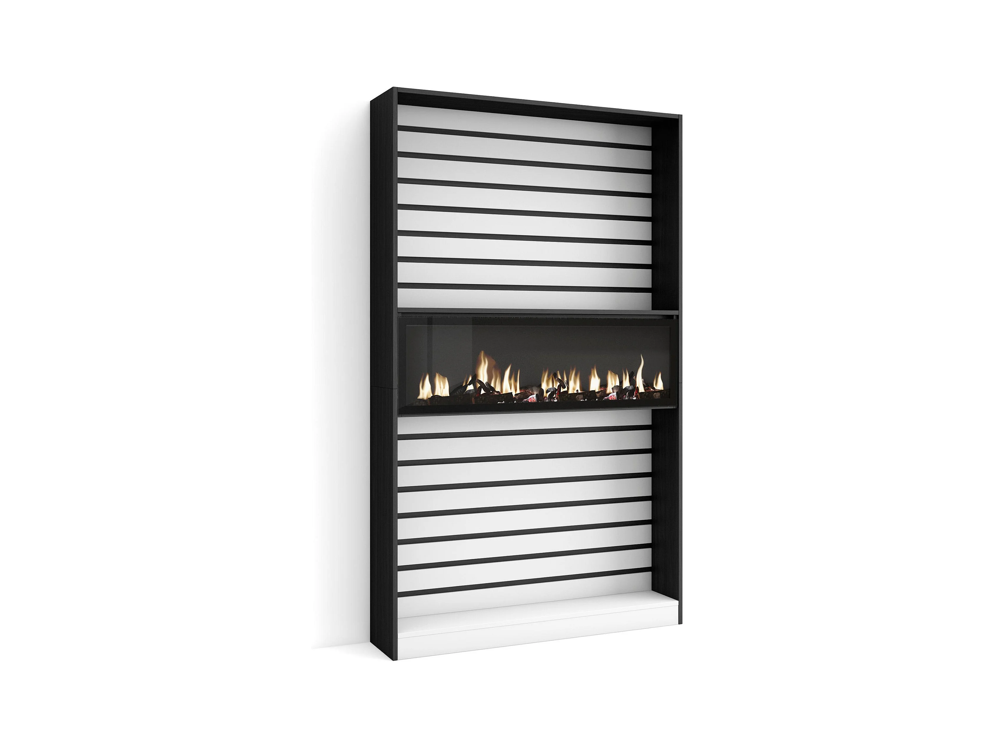 Boekenkast, Boekenplank, 110x25x186cm, Woonkamer, Eetkamer, Bureau, Elektrische haard, Wit en Zwart