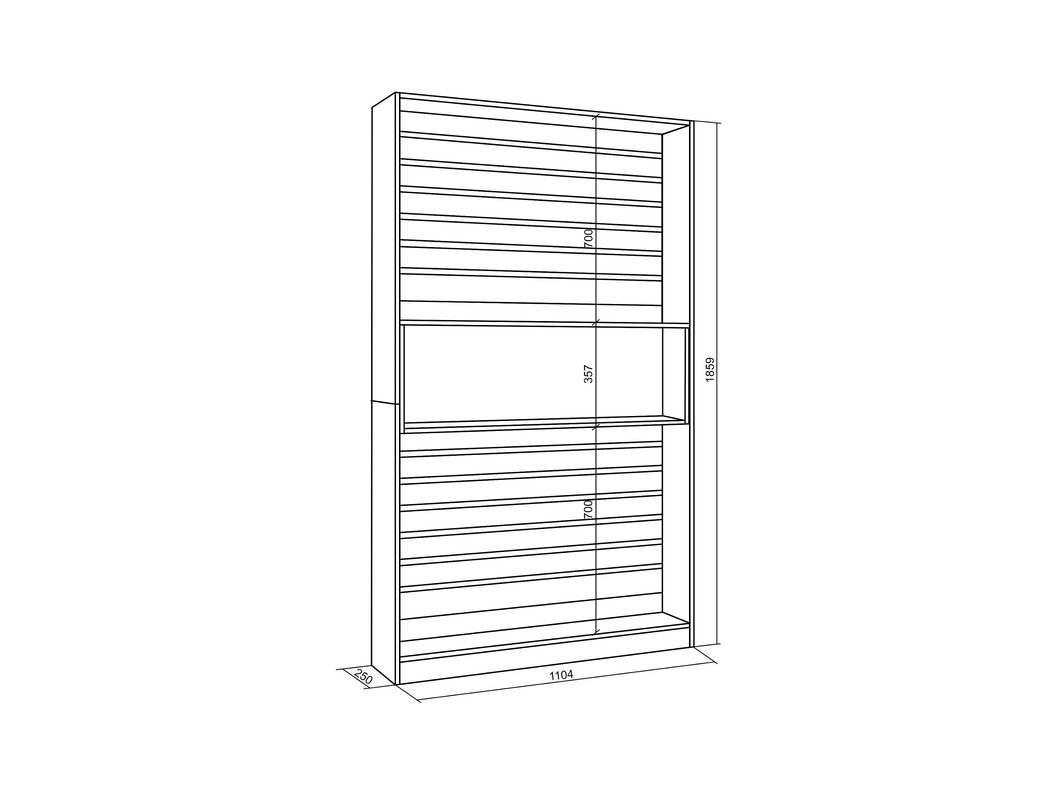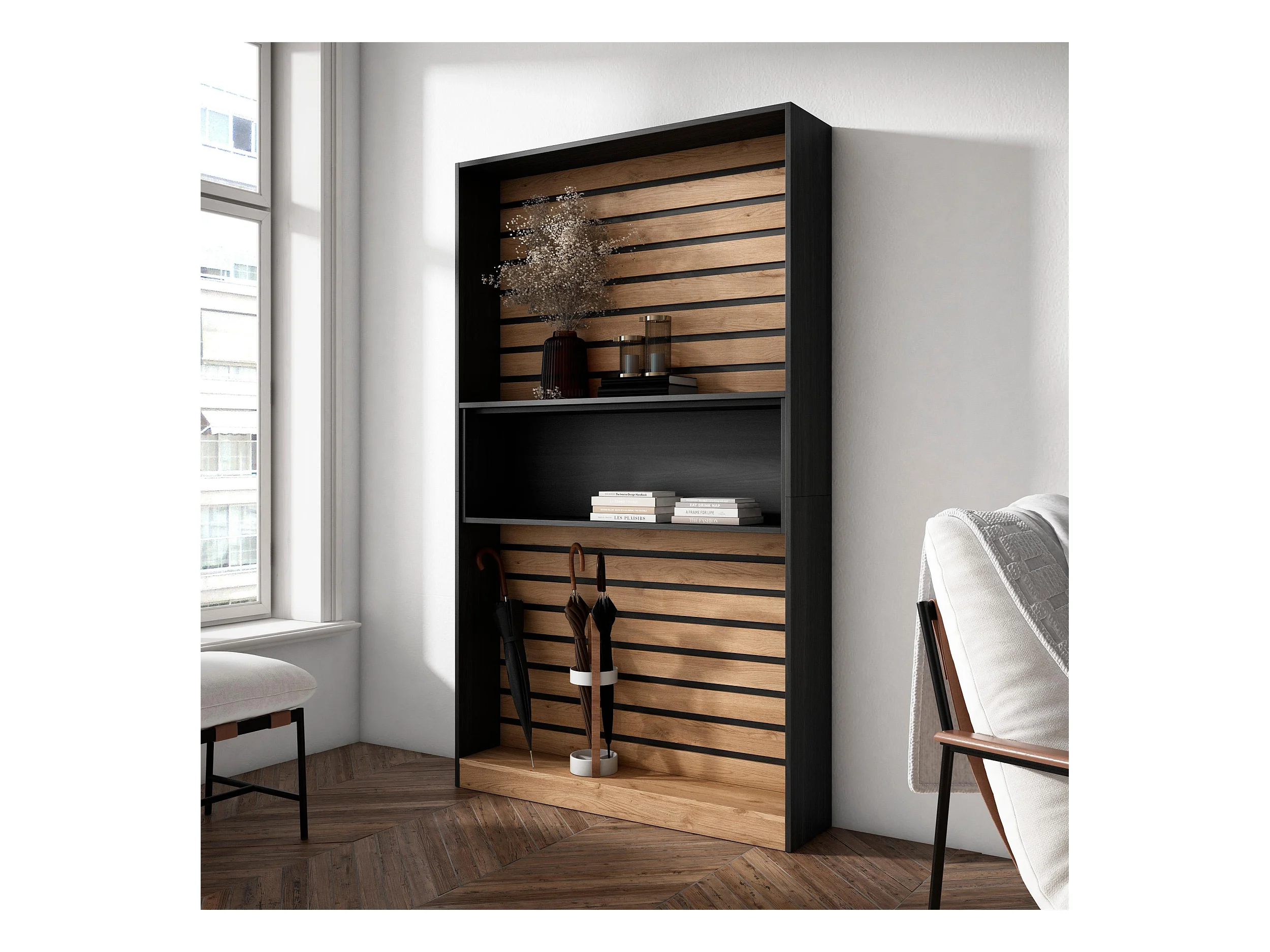 Boekenkast, Boekenplank, 110x25x186cm, Woonkamer, Eetkamer, Bureau, Elektrische haard, Eiken/Zwart