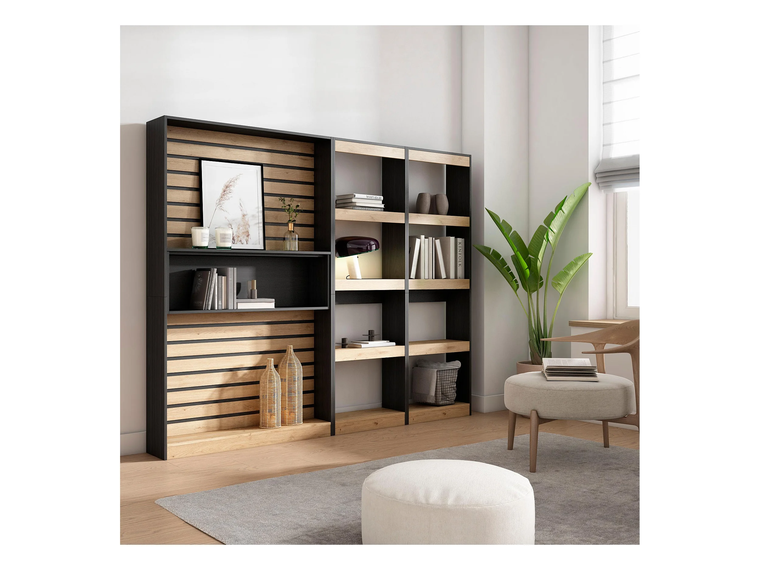 Boekenkast, Boekenplank, 230x25x186cm, Woonkamer, Eetkamer, Bureau, Elektrische haard, Eiken/Zwart