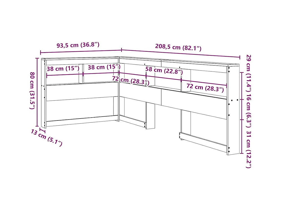 Boekenkast Hoofdeinde L-vormig 80 cm massief grenenhout wit