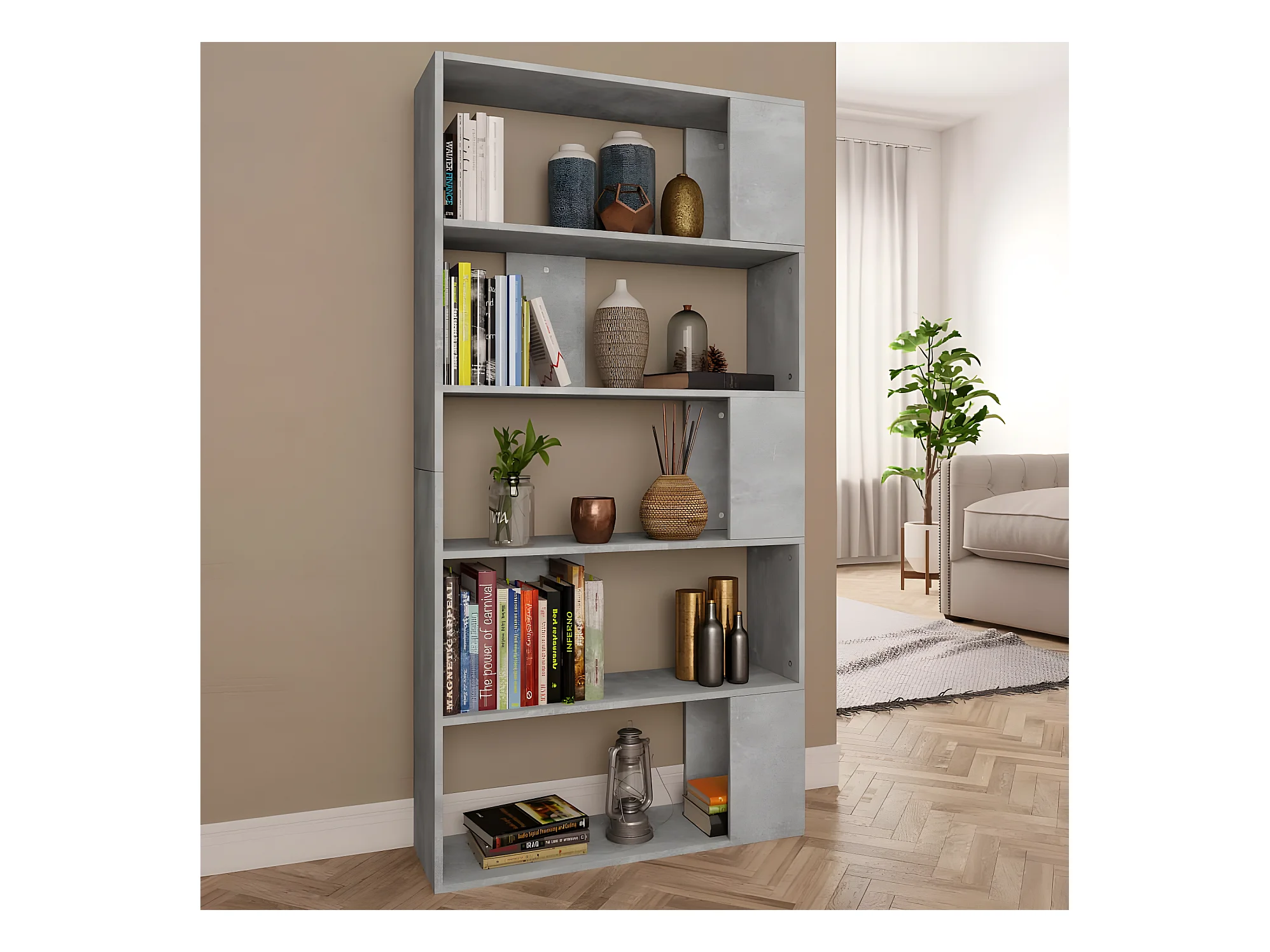 Boekenkast/kamerscherm 80x24x186 cm bewerkt hout betongrijs NL392505