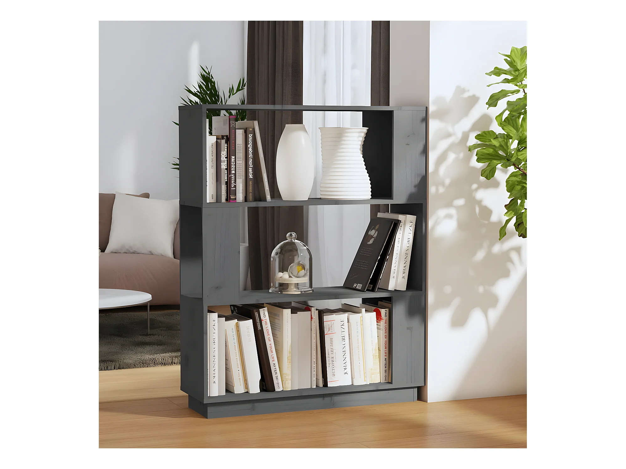 Boekenkast/kamerscherm 80x25x101 cm massief grenenhout grijs NL397761