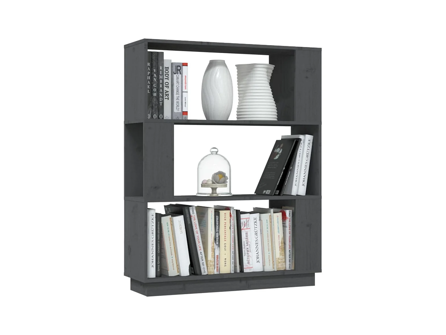 Boekenkast/kamerscherm 80x35x56,5 cm massief grenenhout grijs