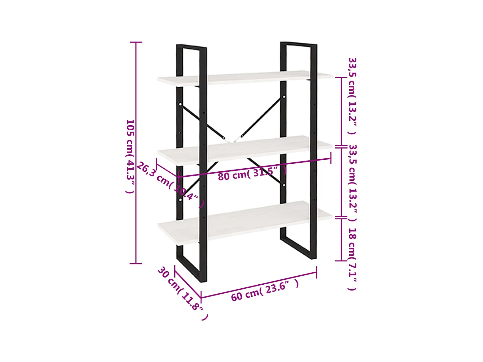 Boekenkast met 3 schappen 80x30x105 cm massief grenenhout wit