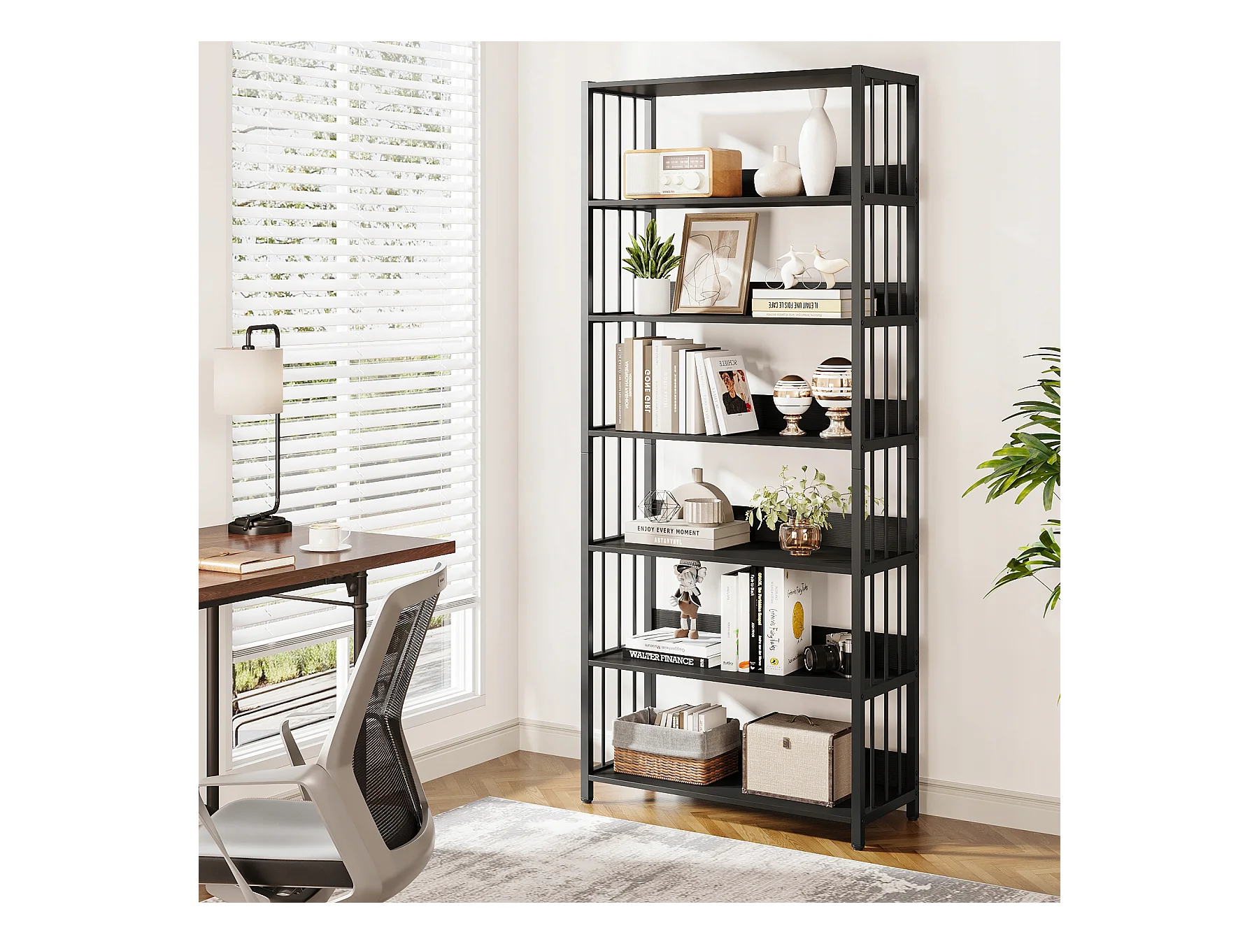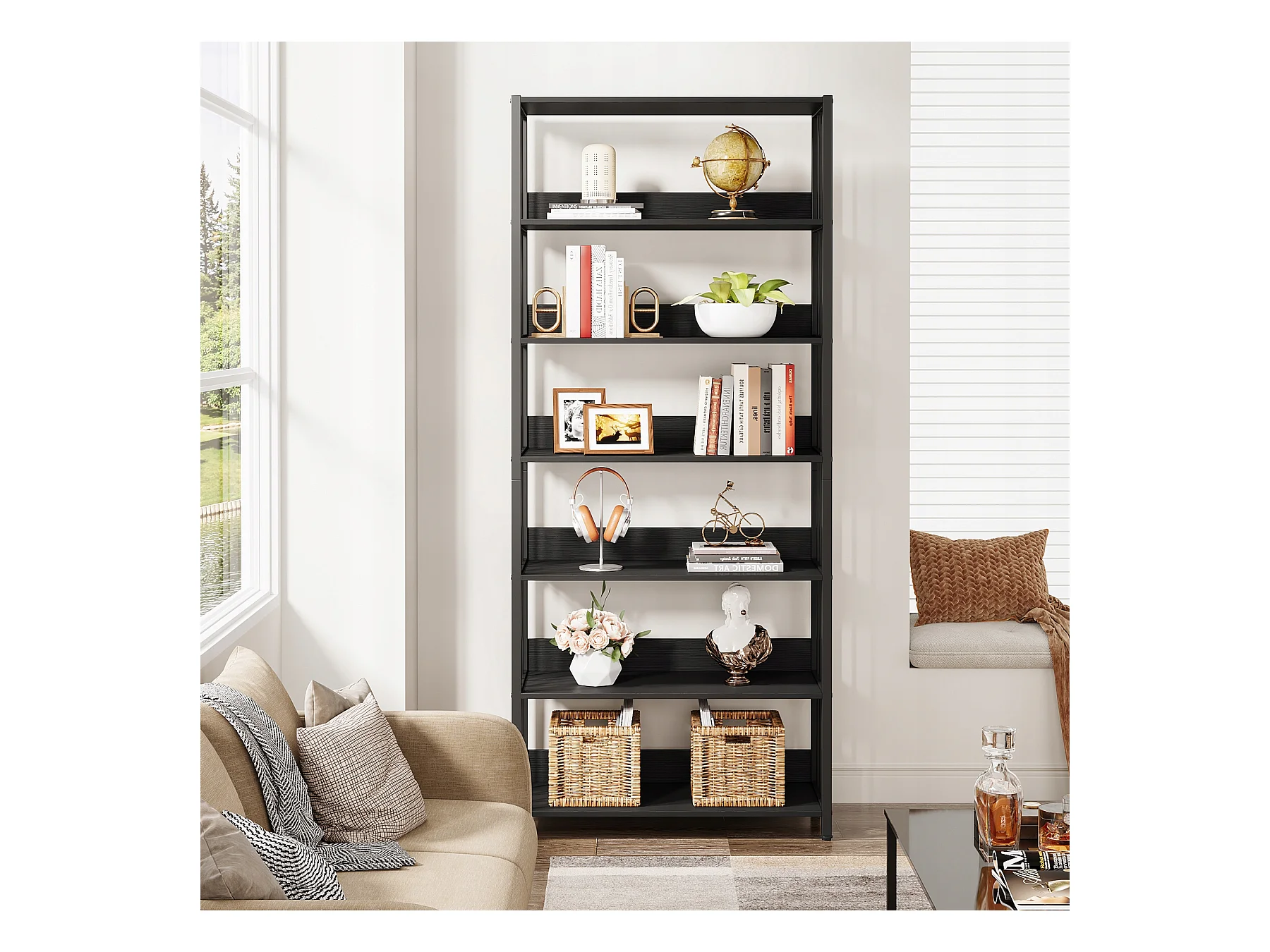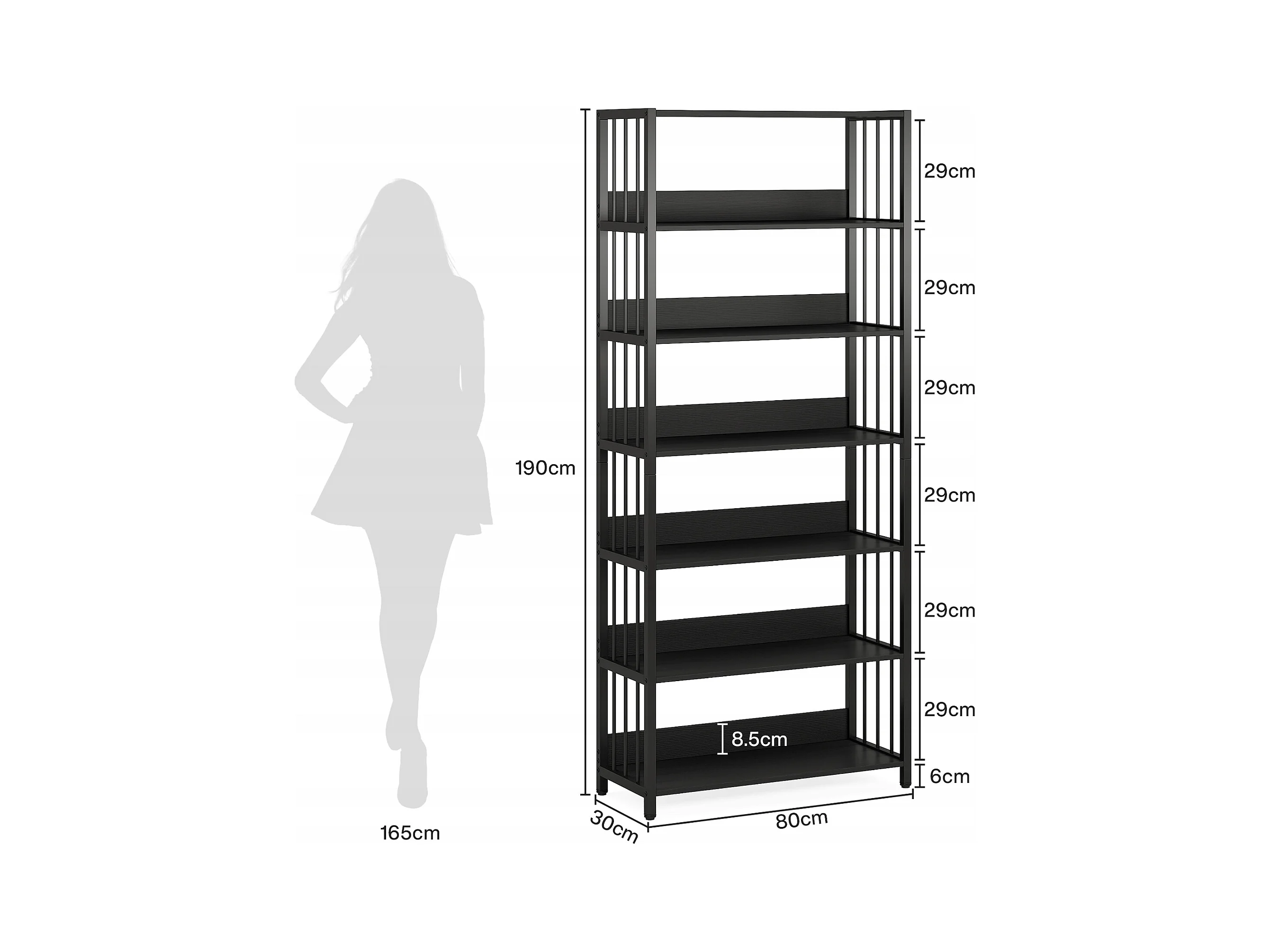 Boekenkast met 6 lagen, extra hoge smalle boekenkast van 190 cm, vrijstaande planken, 70 x 30 x 190 cm (zwart)