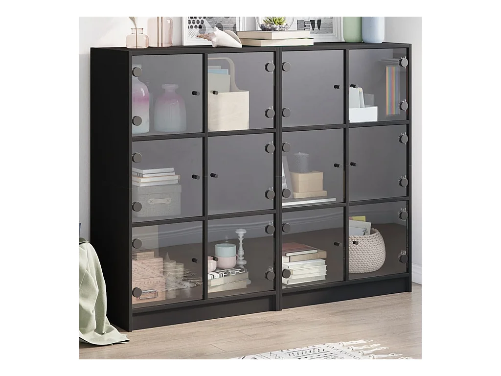 Boekenkast met deuren 136x37x109 cm bewerkt hout zwart BE247823