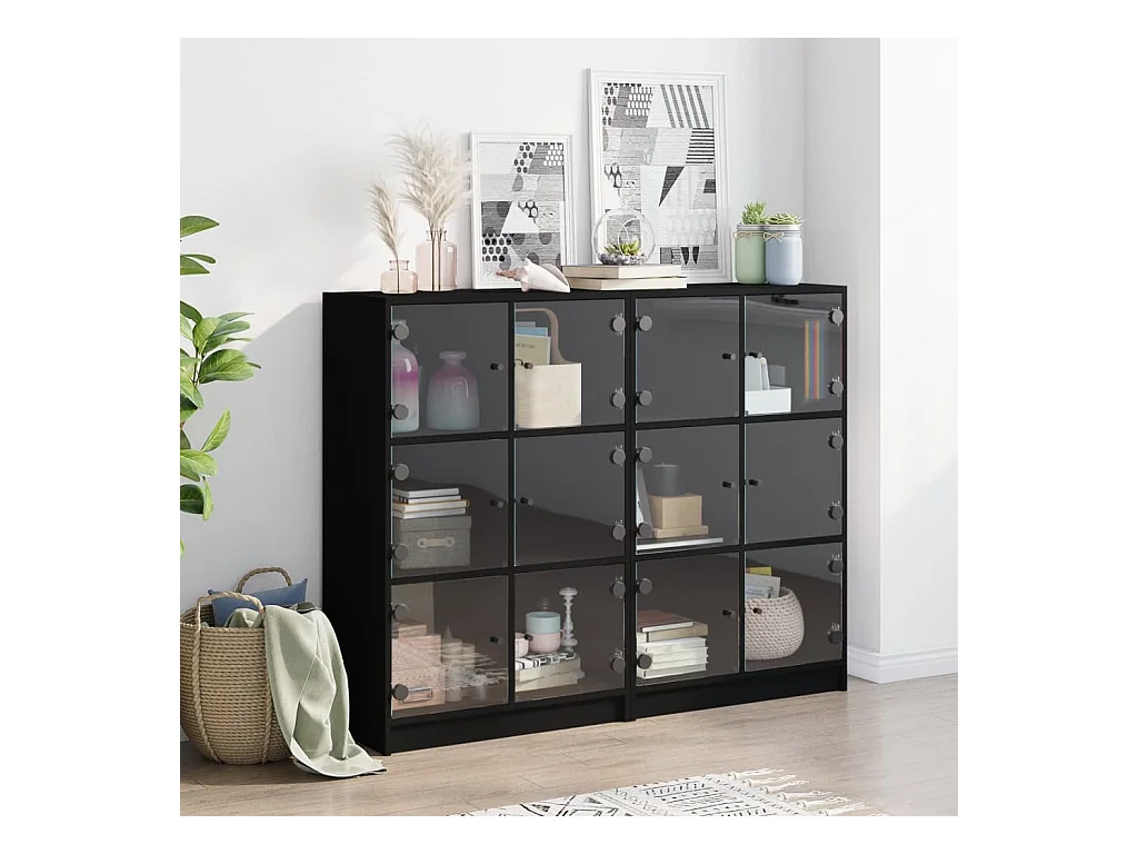 Boekenkastukkenmet deuren 136x37x109 cm bewerkt hout zwart