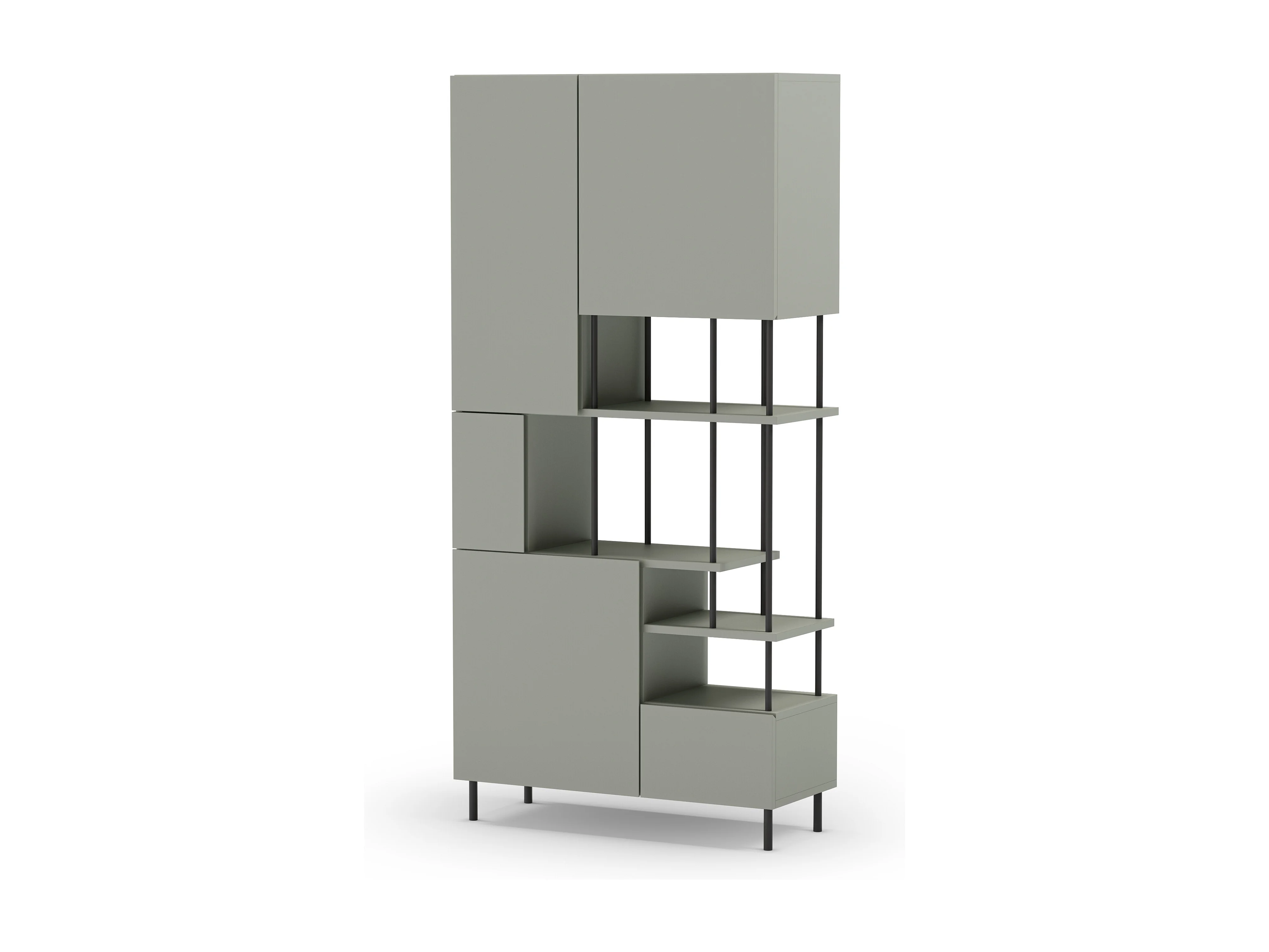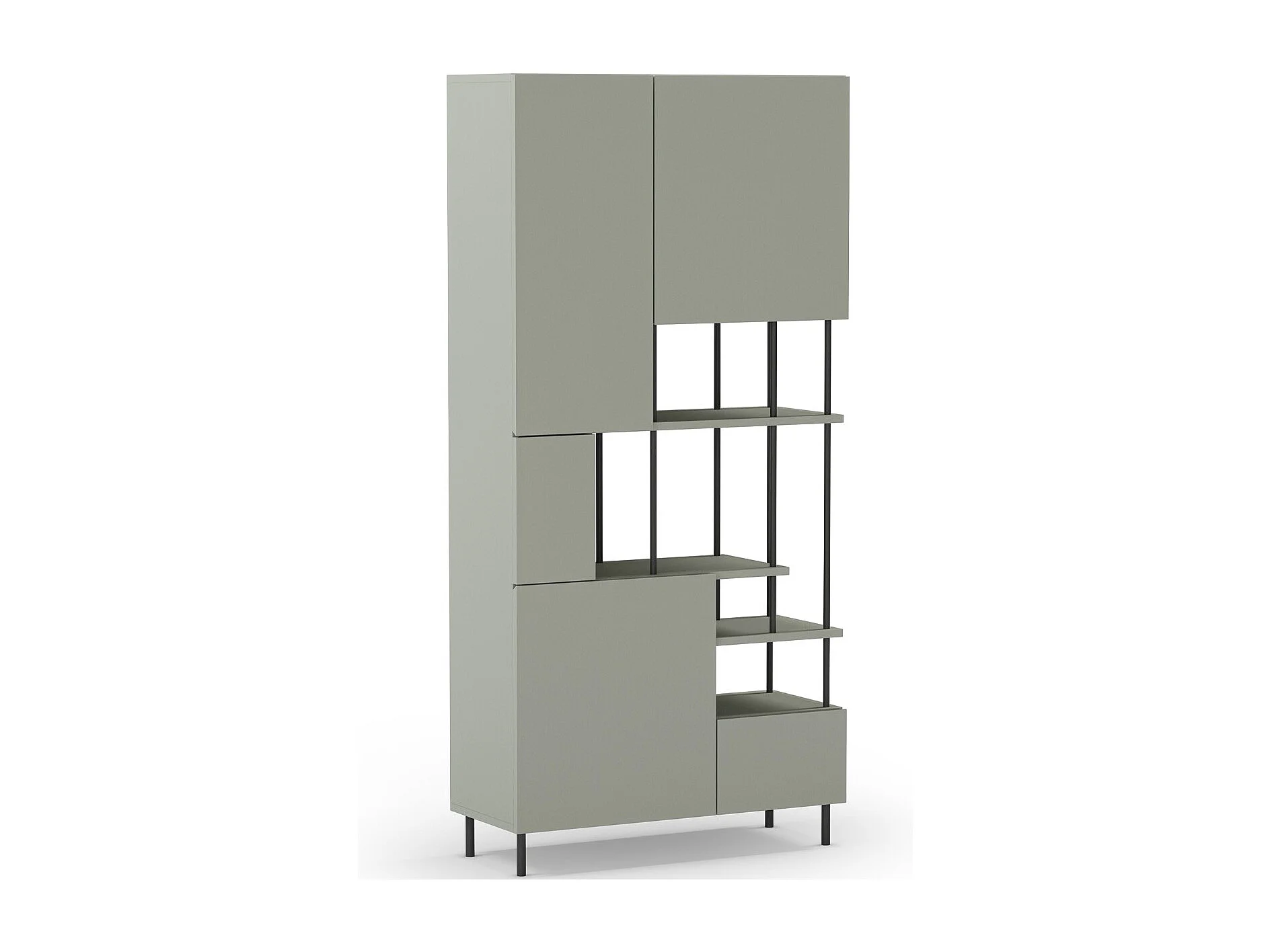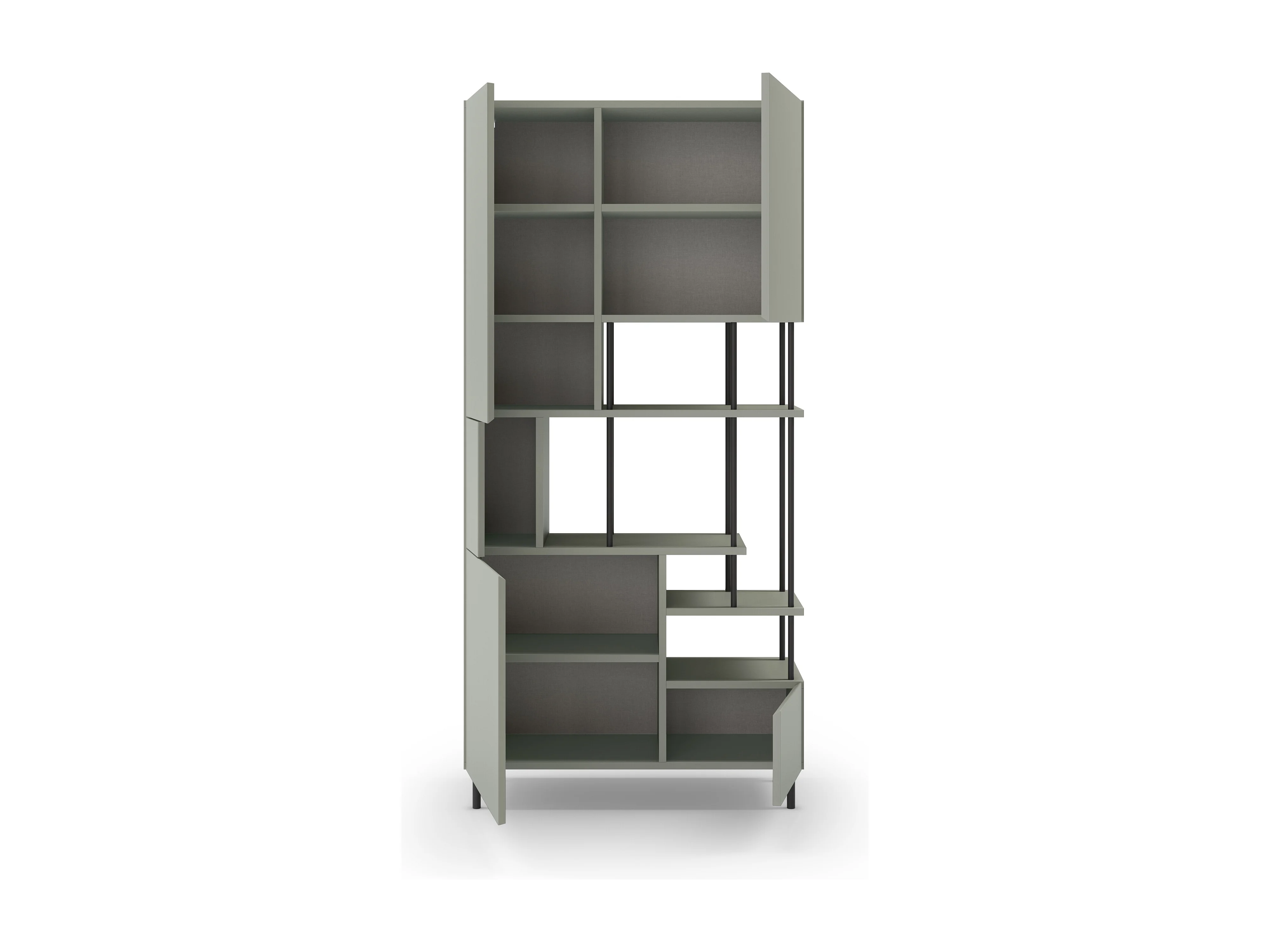 Boekenkast collectie DOUGLAS in groene kleur met veel opbergruimte en gouden afwerkingen, 70 x 200 x 42 cm.