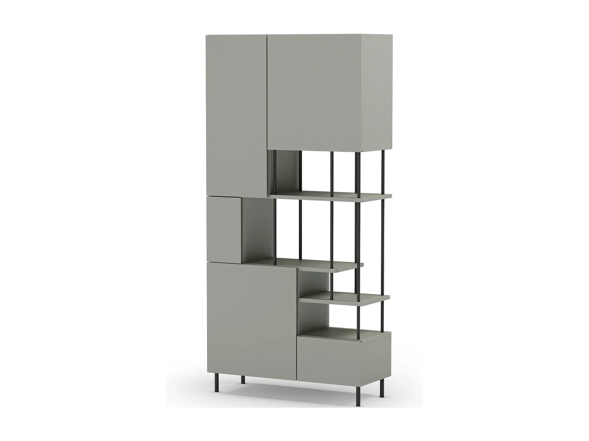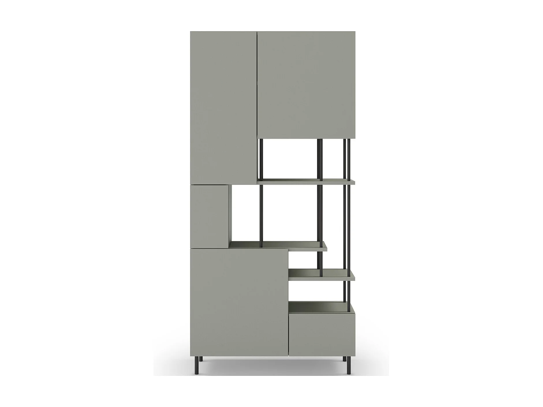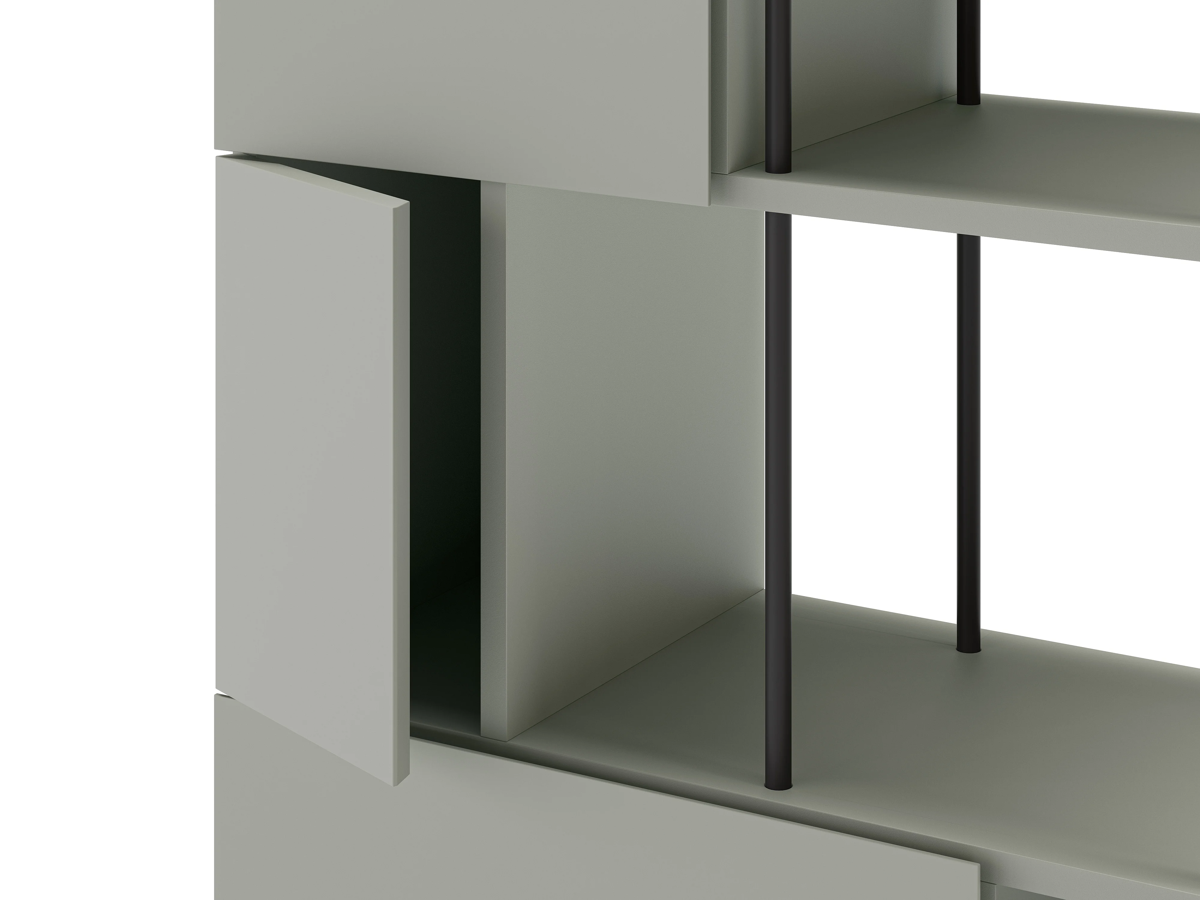 Boekenkast collectie DOUGLAS in groene kleur met veel opbergruimte en gouden afwerkingen, 70 x 200 x 42 cm.