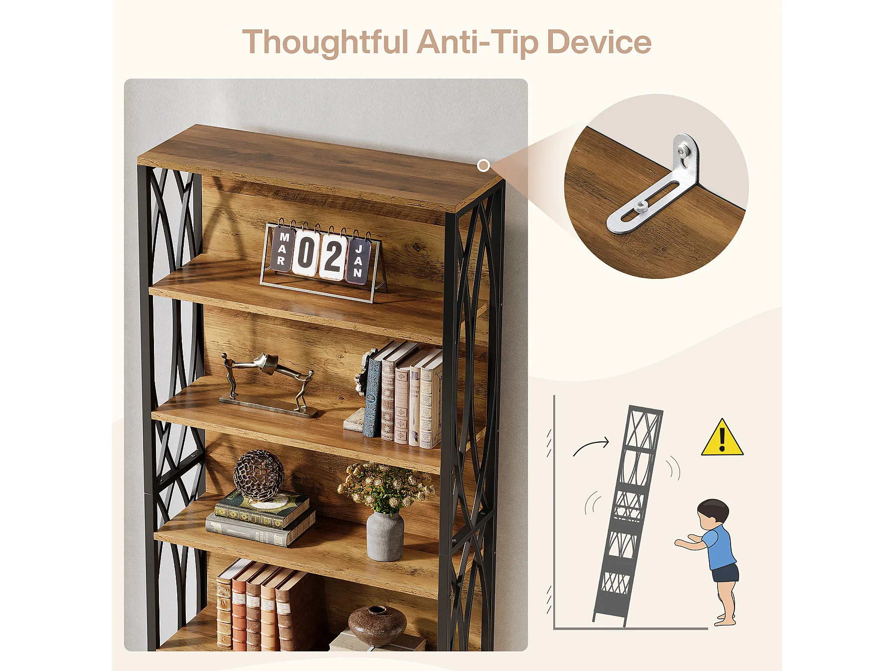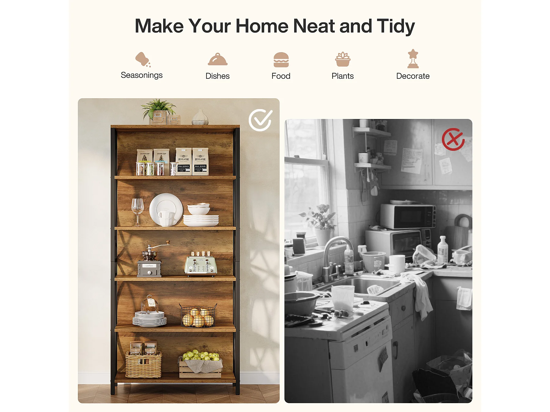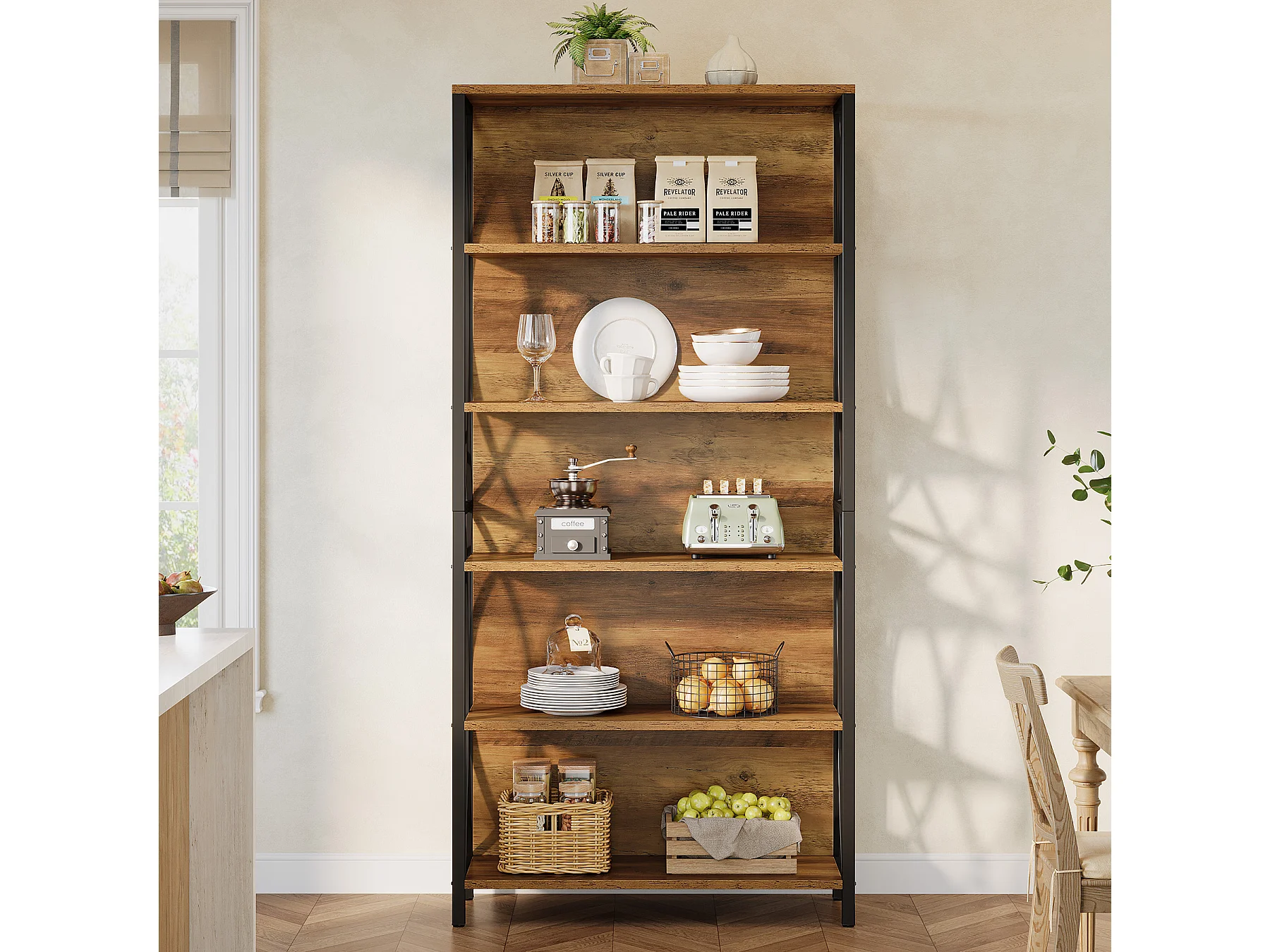 5-laags industriële boekenkast, 177,5 cm hoge etagère boekenkast met open planken