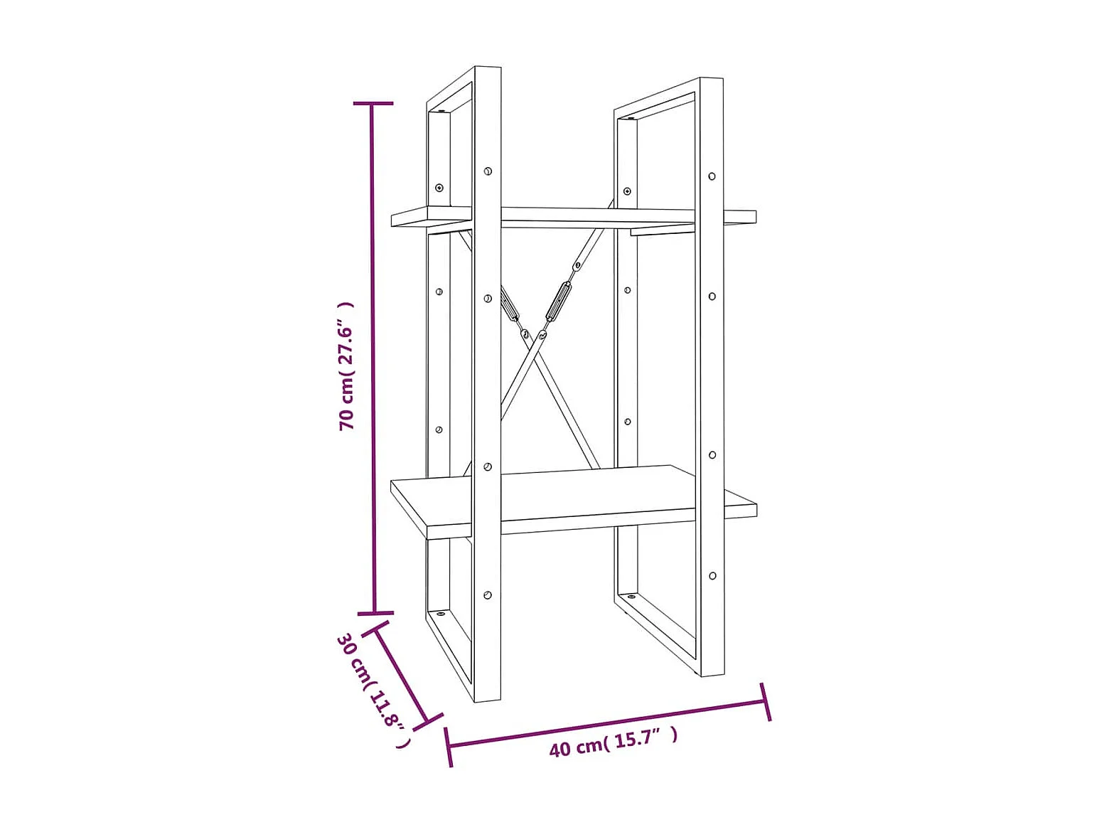 Boekenkast met 2 schappen 80x30x70 cm bewerkt hout grijs sonoma