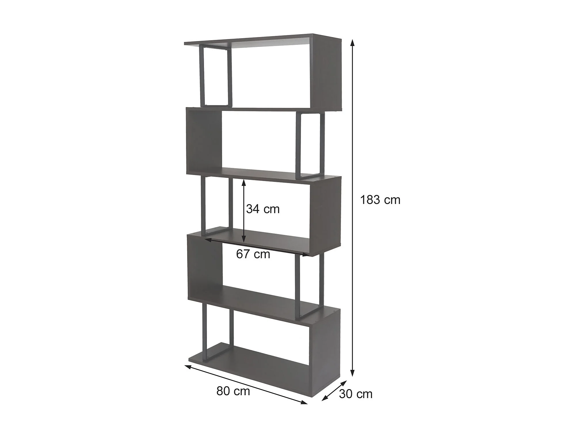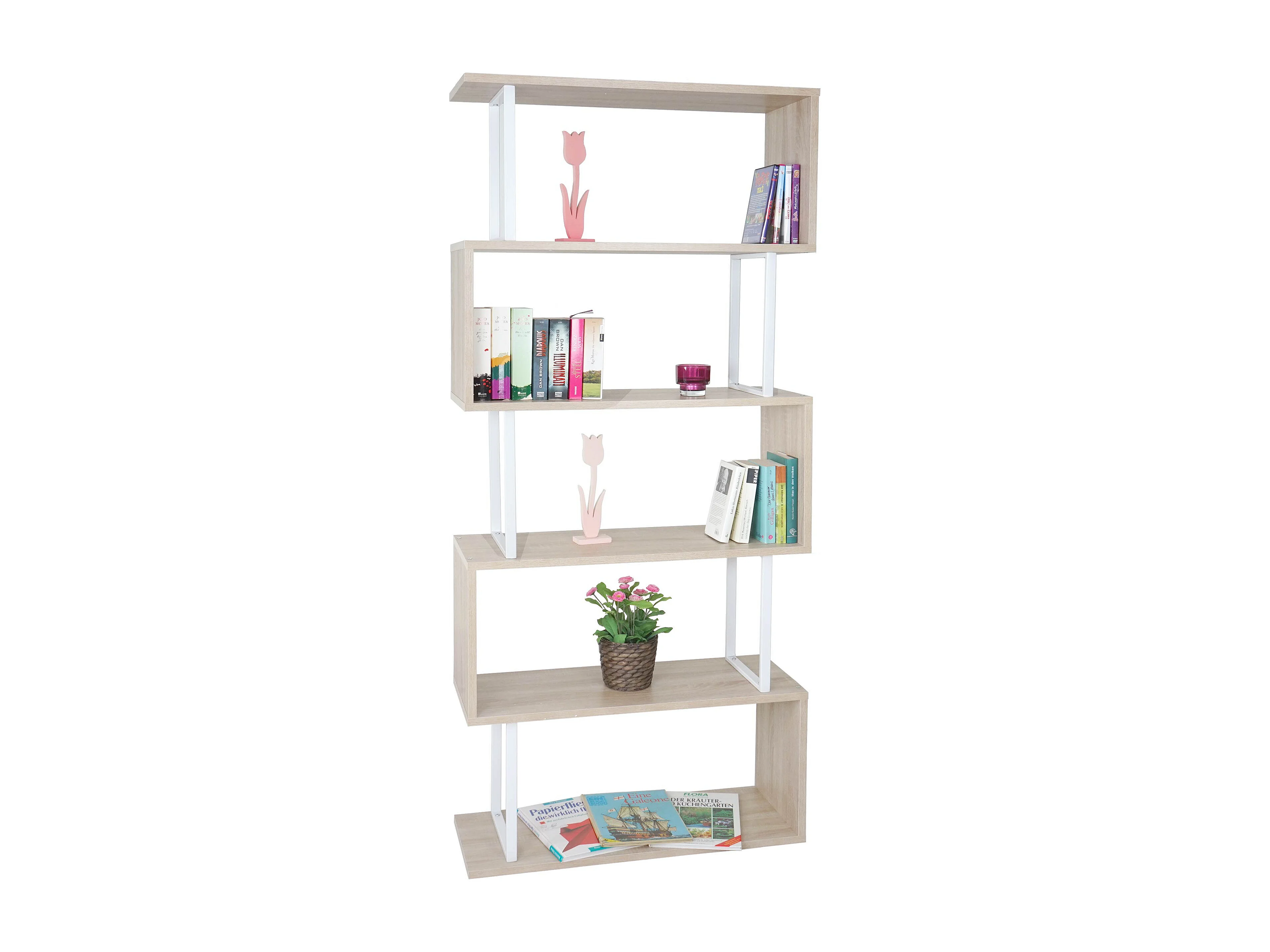 Boekenkast MCW-A27, eiken look, wit metaal
