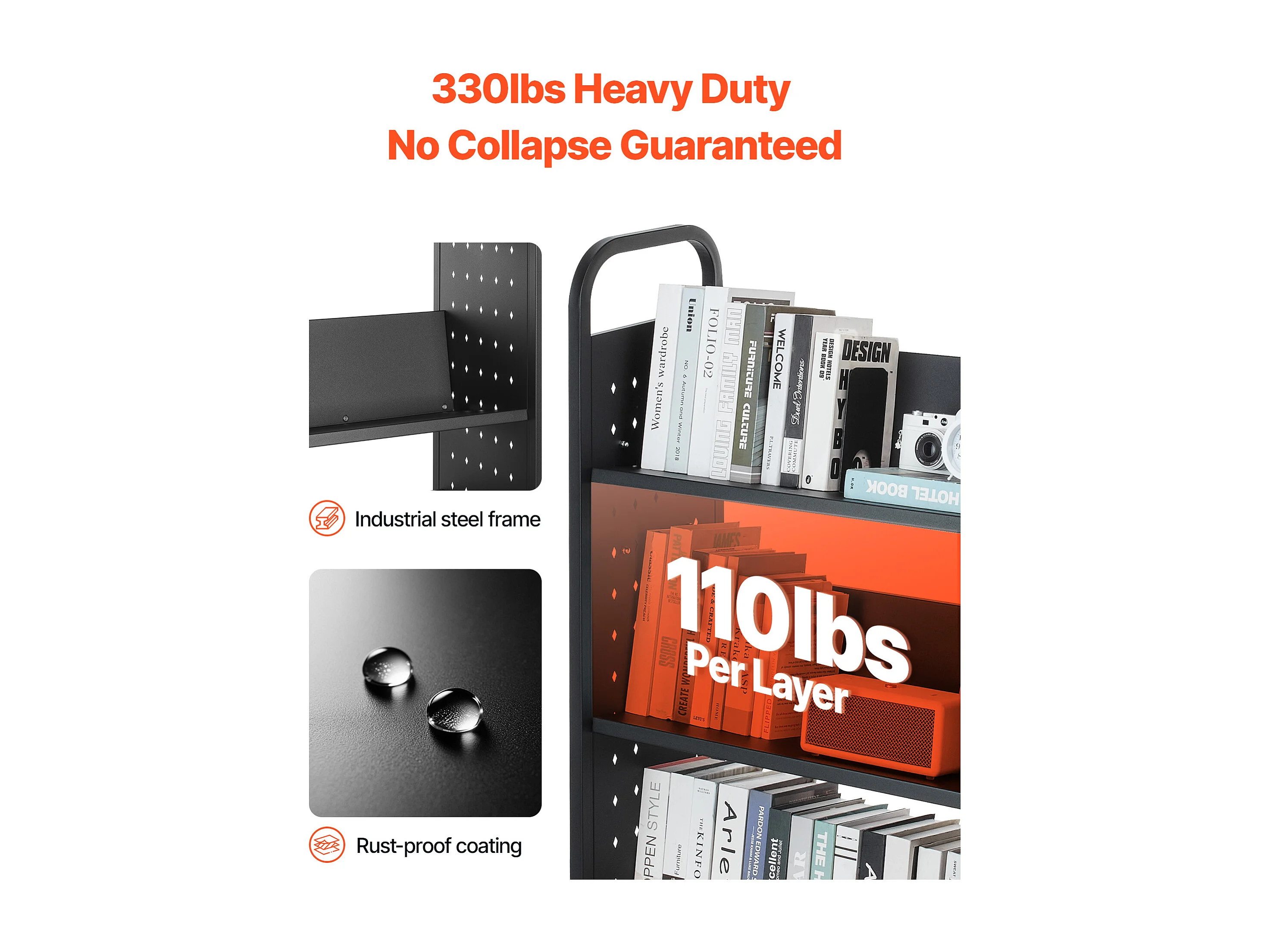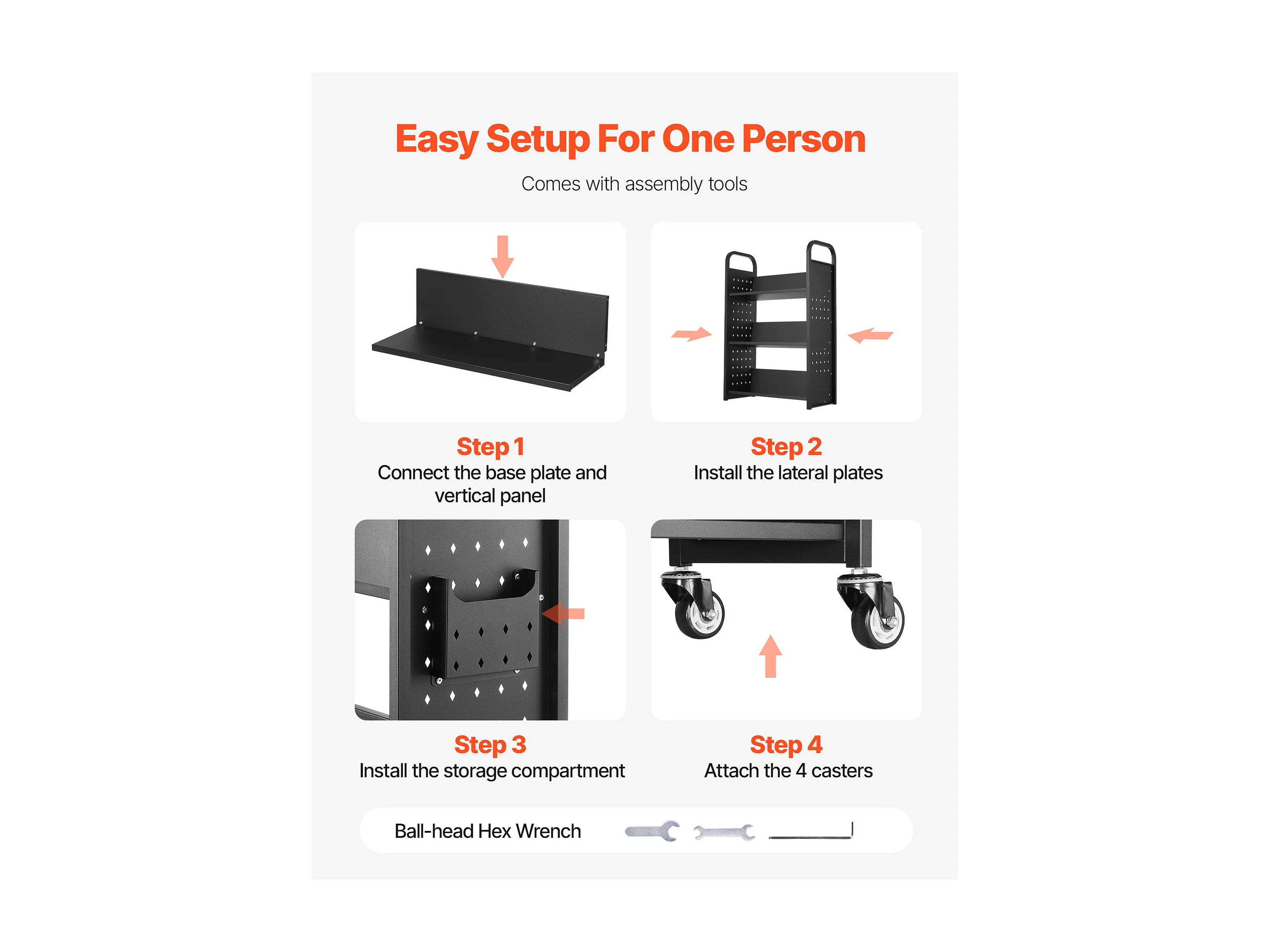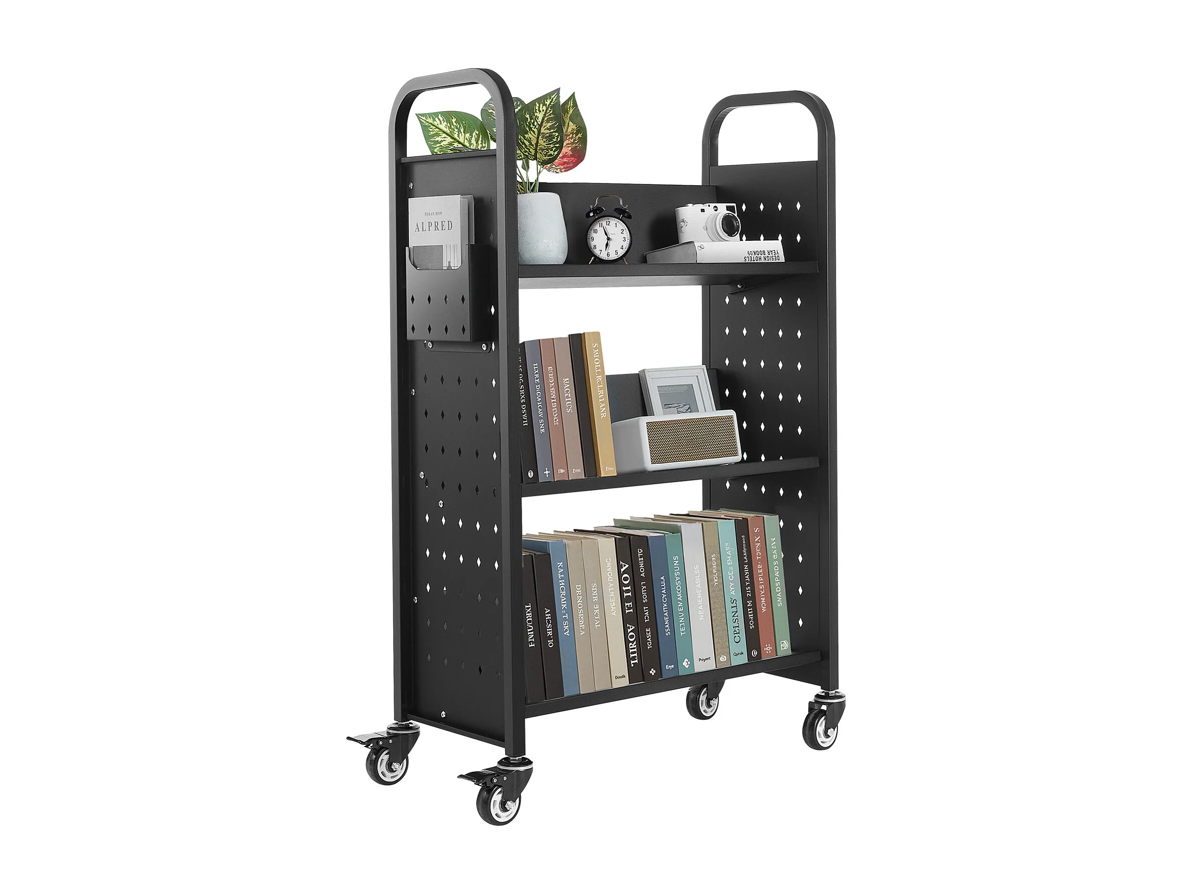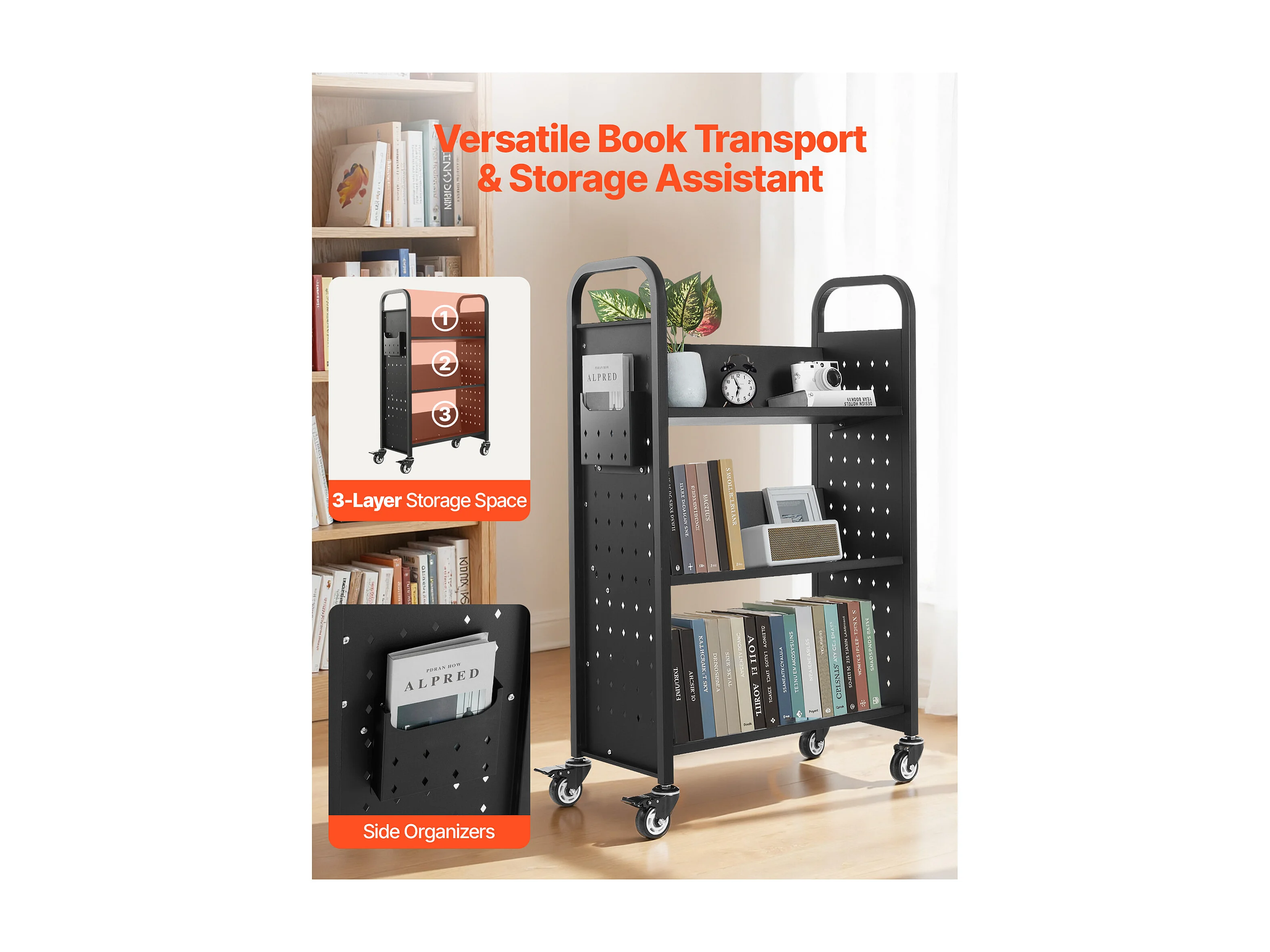 Boekenwagen SucceBuy, Laadvermogen 150 kg, 77 x 38 x 122 cm, Boeken Opbergplank Enkele Zijde in V, voor Woonkamer, Kantoor, School, Zwart