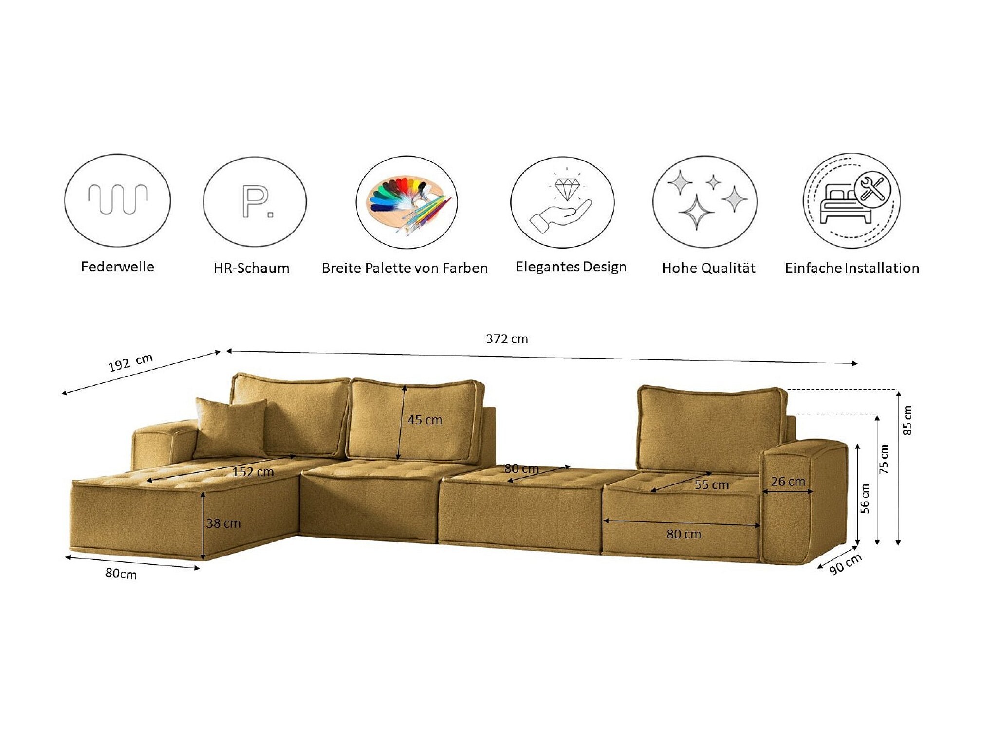 Bohoo XL L-vormige hoekbank, Raven stof, geel, links