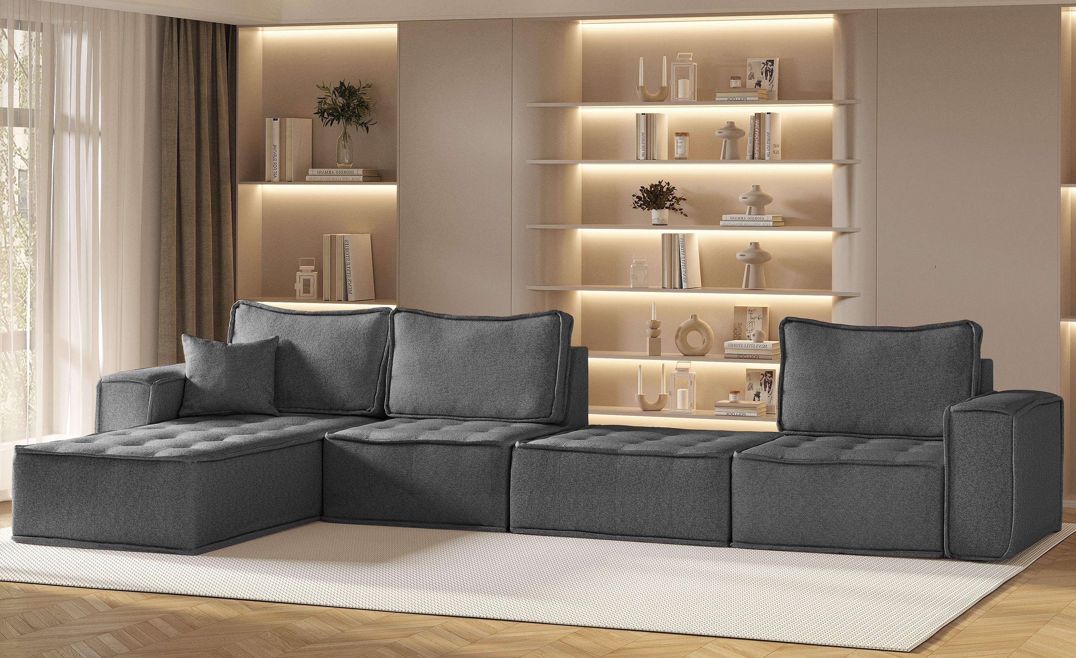 Bohoo XL L-vormige hoekbank, stof Raven, donkergrijs, links