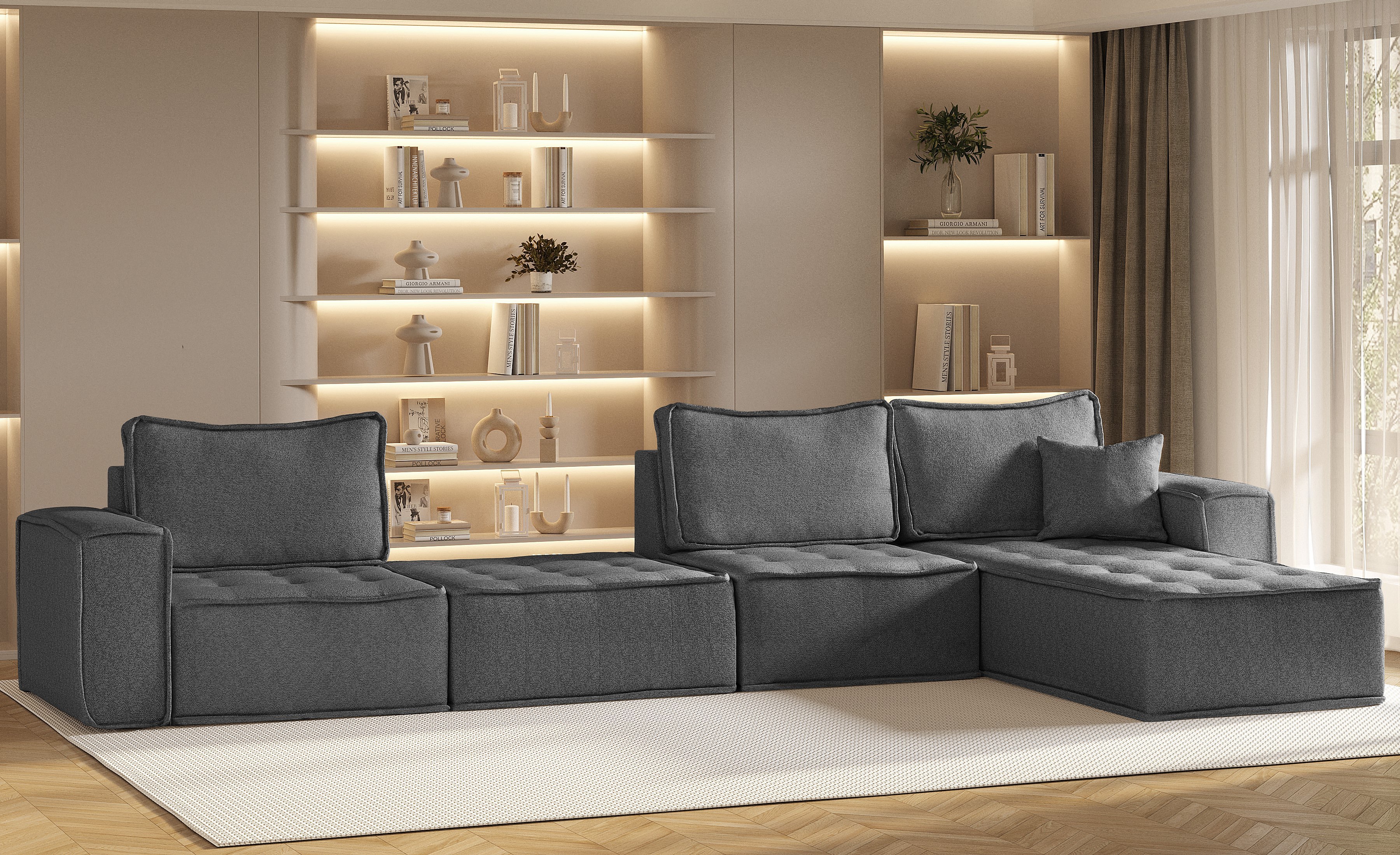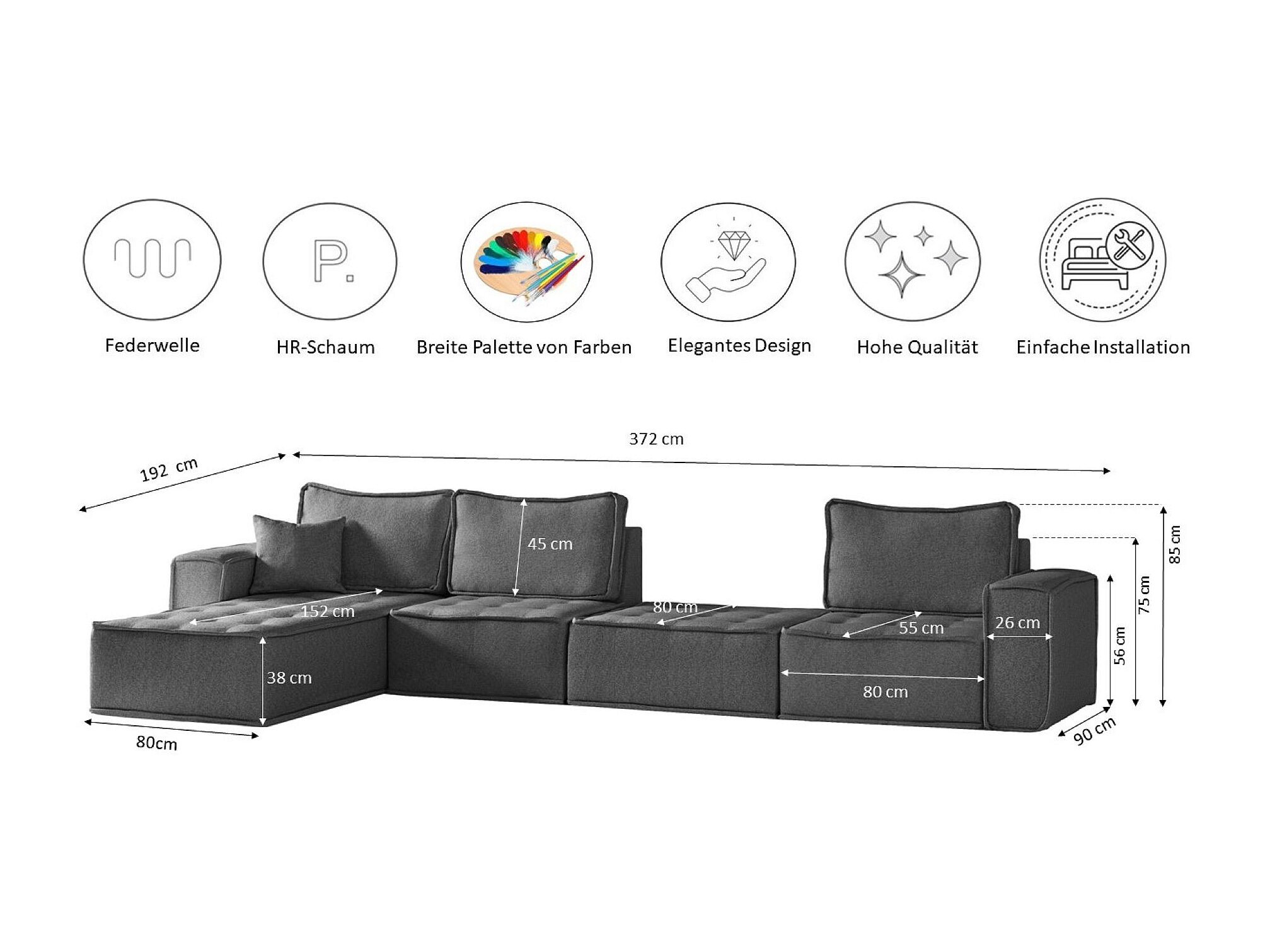 Bohoo XL L-vormige hoekbank, stof Raven, donkergrijs, rechts