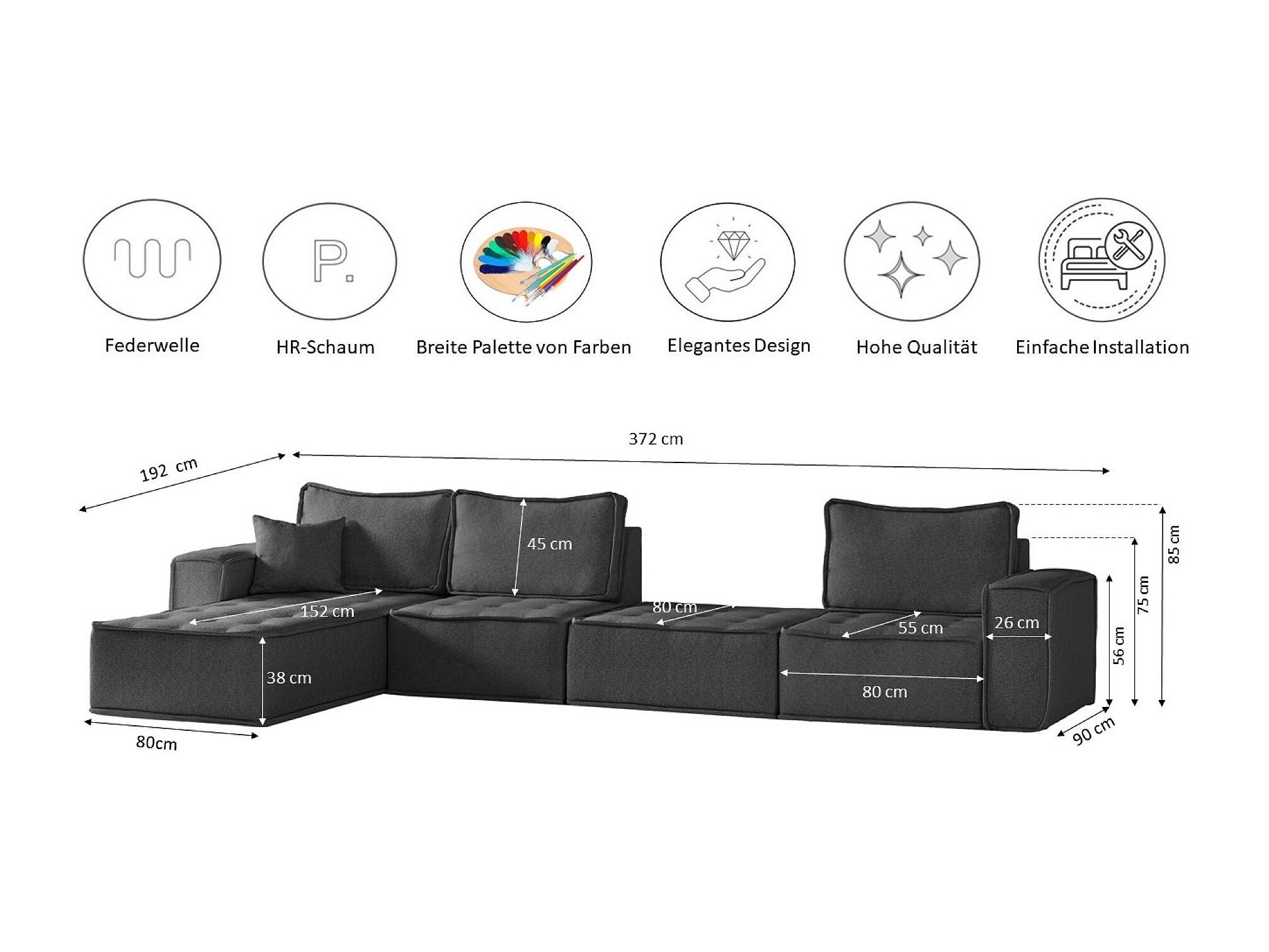 Bohoo XL L-vormige hoekbank, stof Raven, grafiet, links