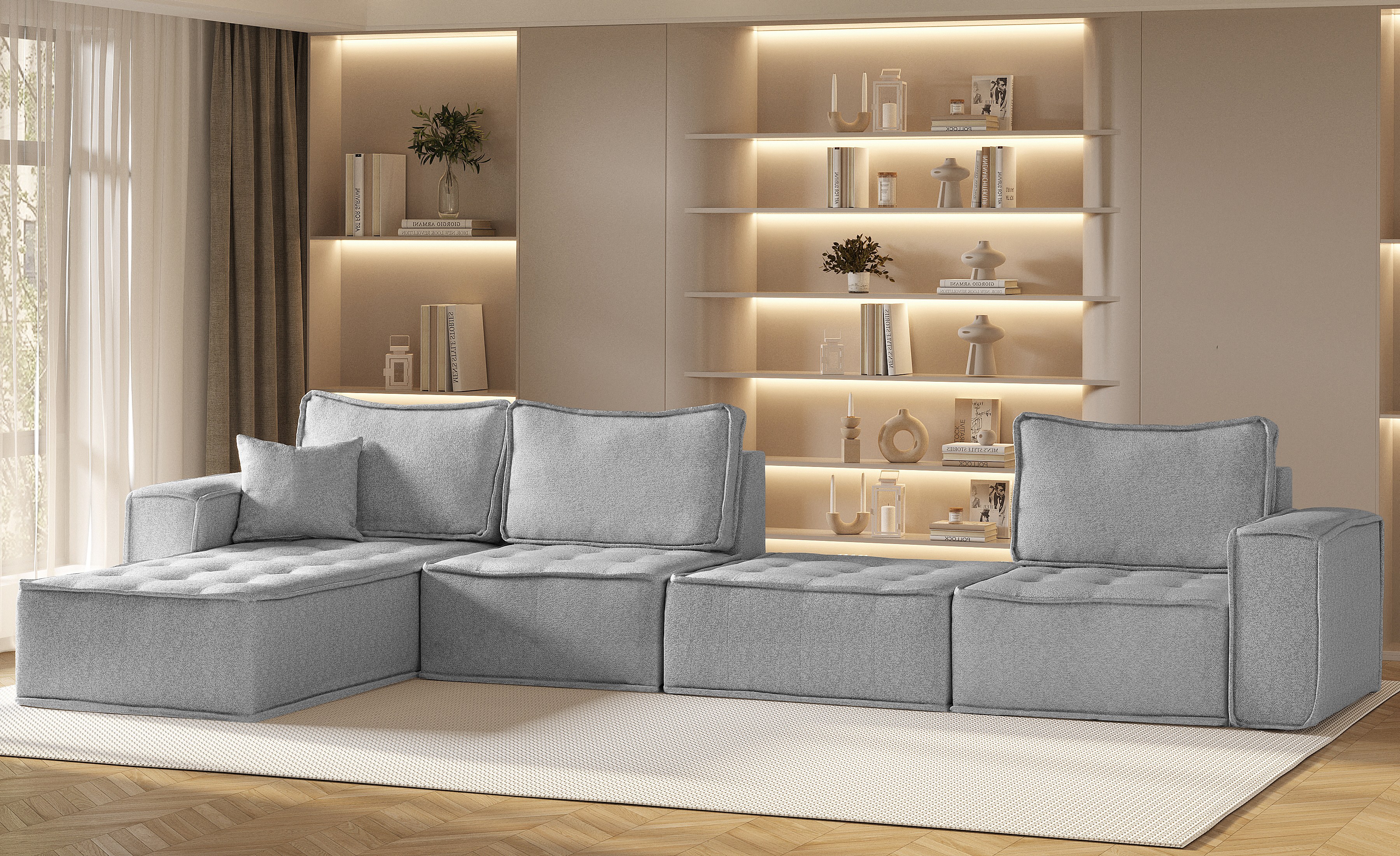 Bohoo XL L-vormige hoekbank, stof Raven, grijs, links