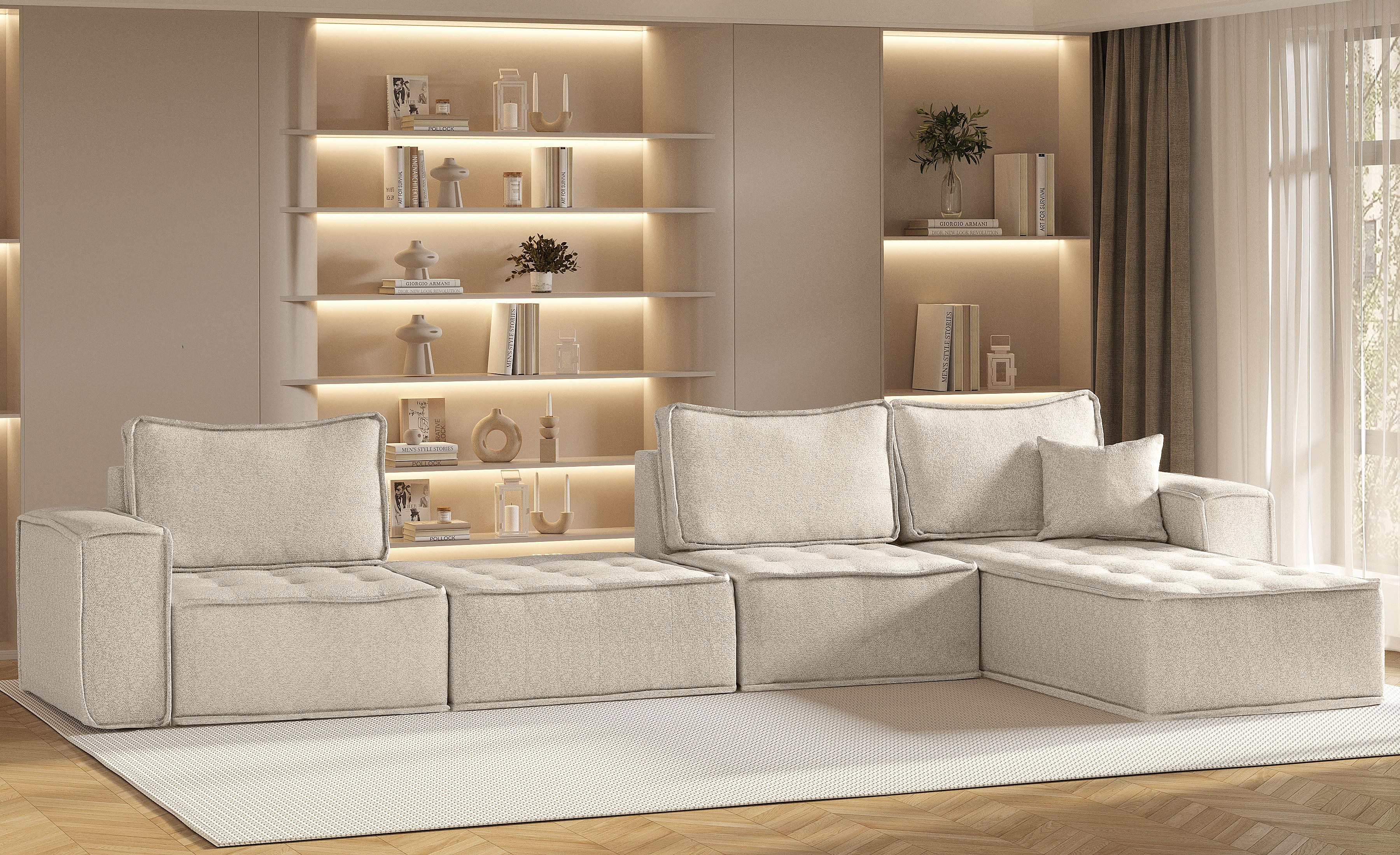 Bohoo XL L-vormige hoekbank, stof Raven, lichtbeige, rechts
