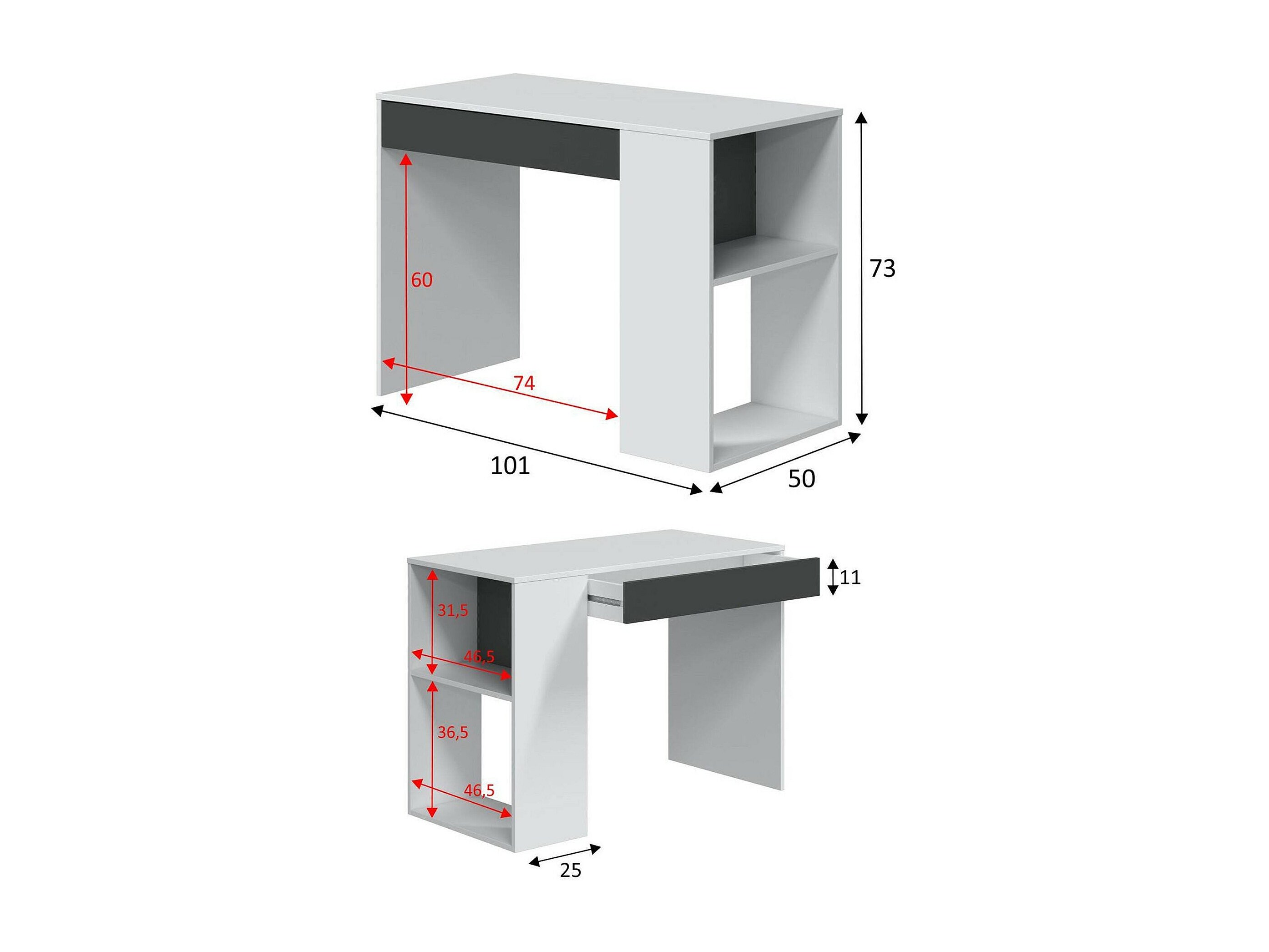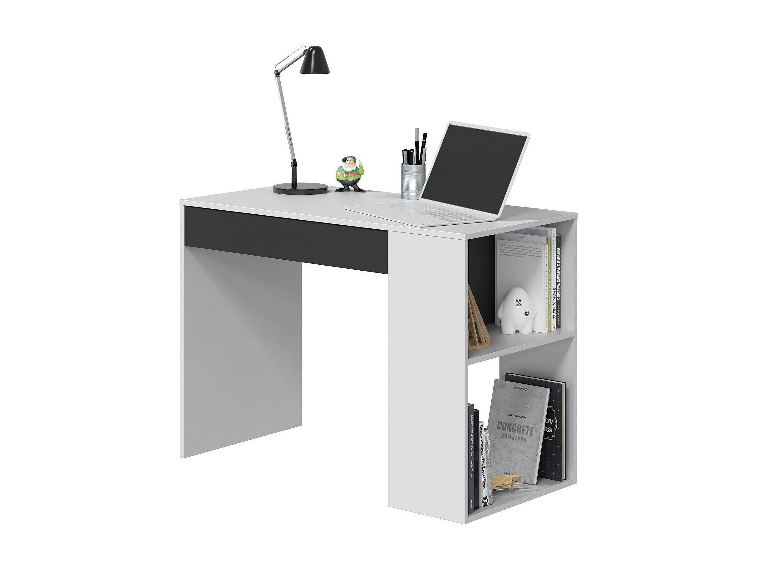 Boise Bureau, Omkeerbaar multifunctioneel bureau met lade, Studeer- of kantoortafel voor pc, 101x50h73 cm, Wit en Antraciet