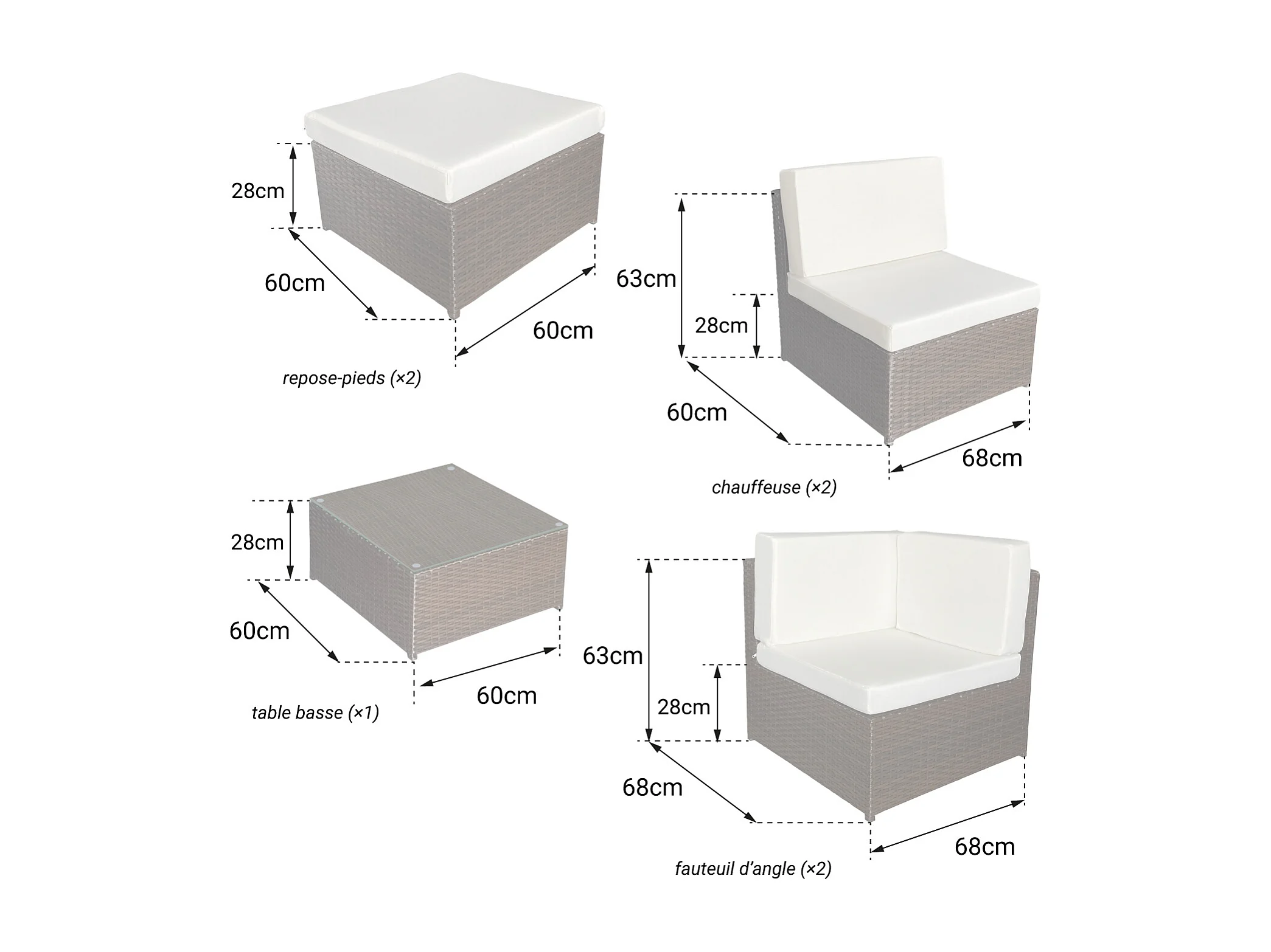 BONIFACIO bruin gevlochten kunststof tuinmeubelset 6 zitplaatsen - ivoorkleurig kussen