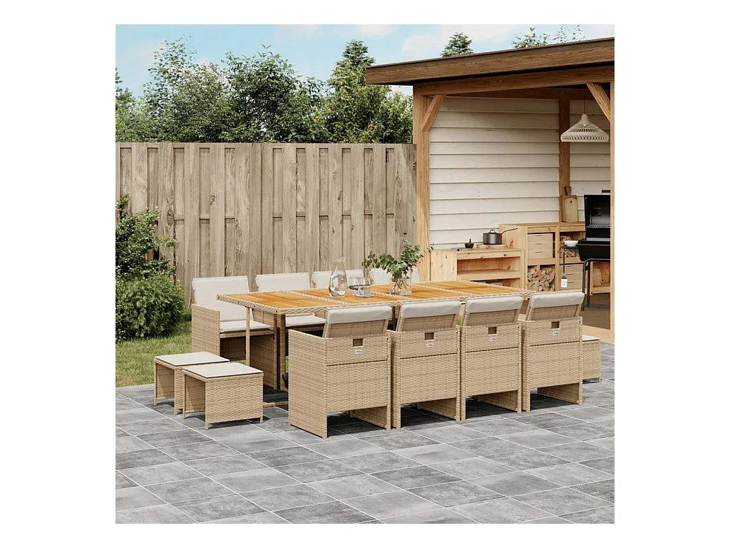 Xeli 13-delige Tuinset met kussens poly rattan beige