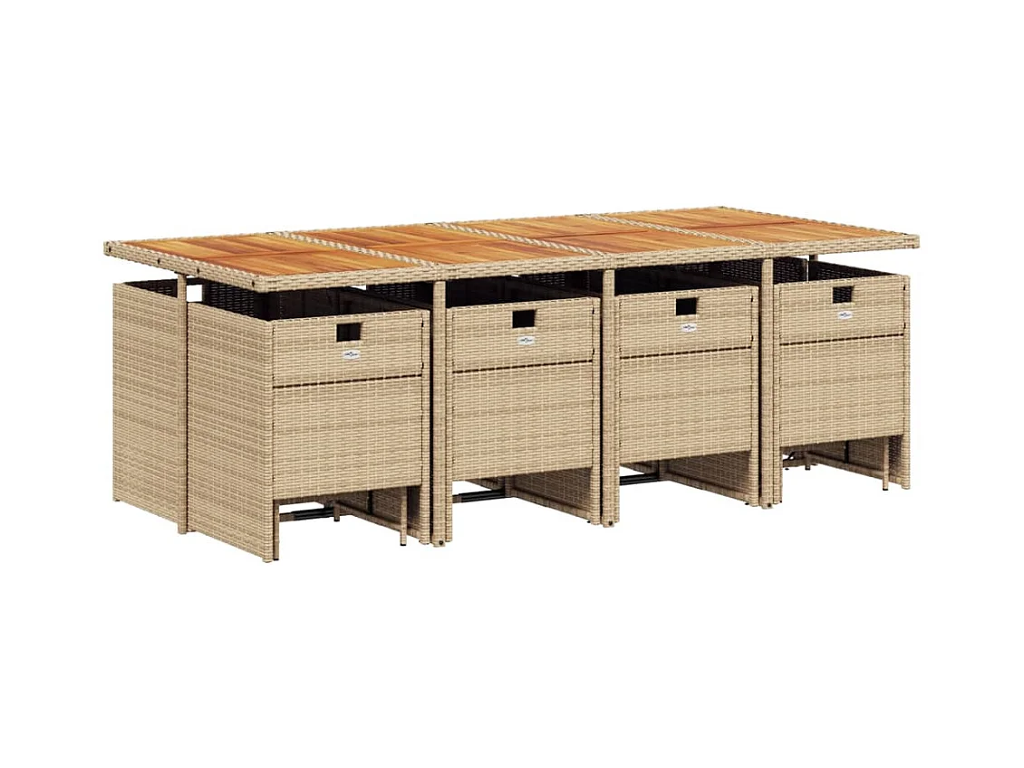 Sener 9-delige Tuinset met kussens poly rattan beige