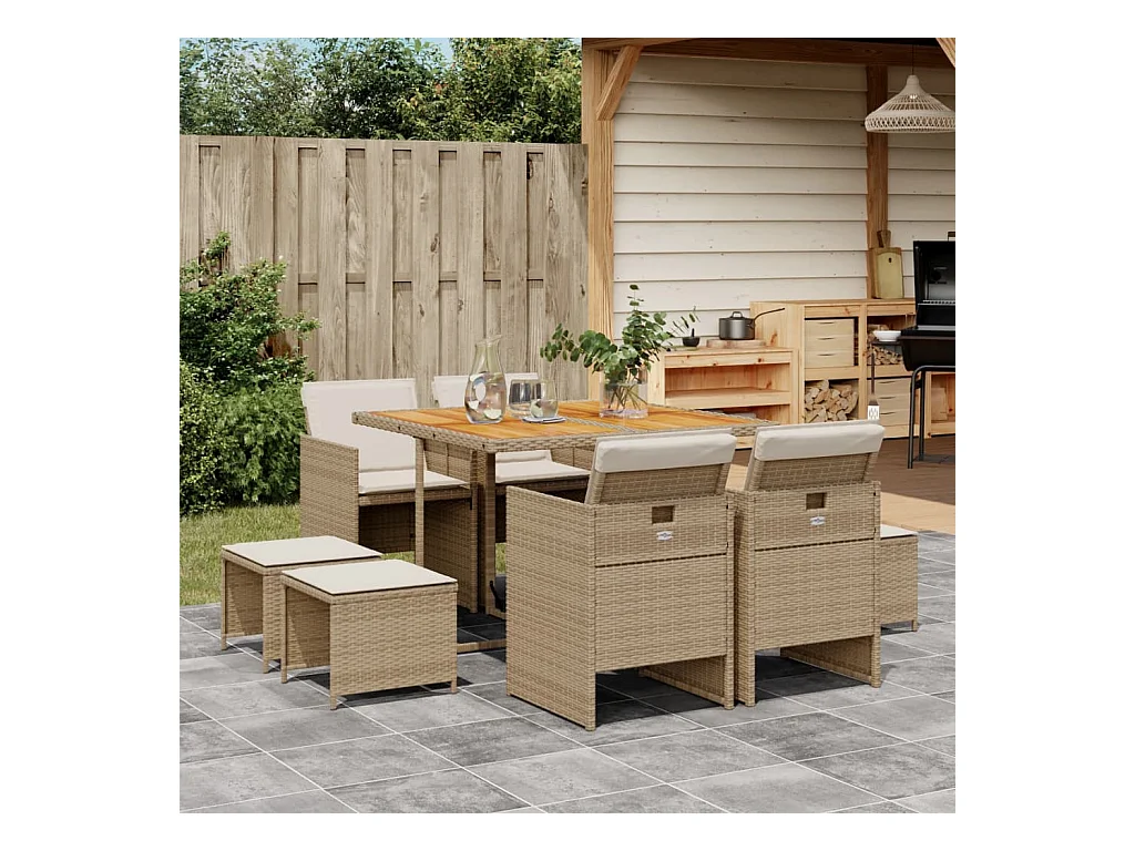 An Daingean 9-delige Tuinset met kussens poly rattan beige