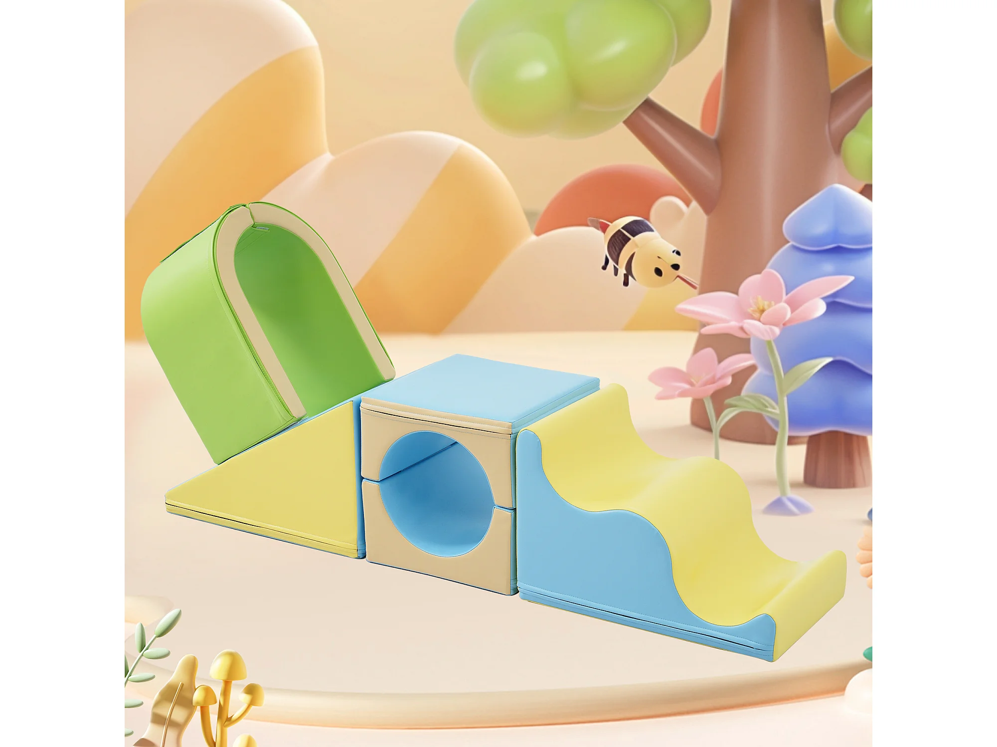 Bouwstenen 160x60x40cm met 6 stuks kindertrap glijbaan en PU bouwstenen brengen Materiaal PU Geel