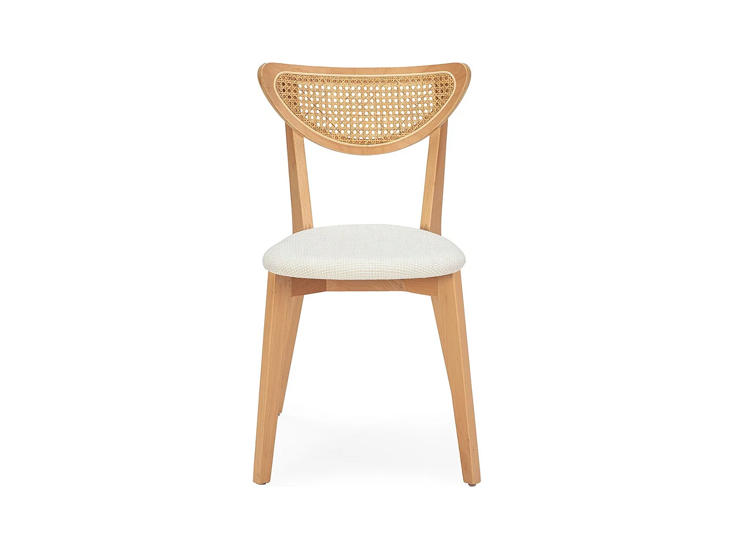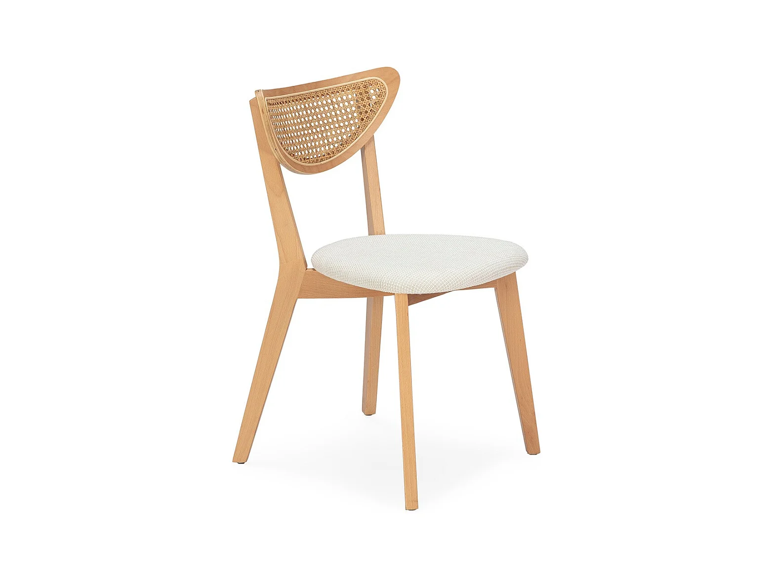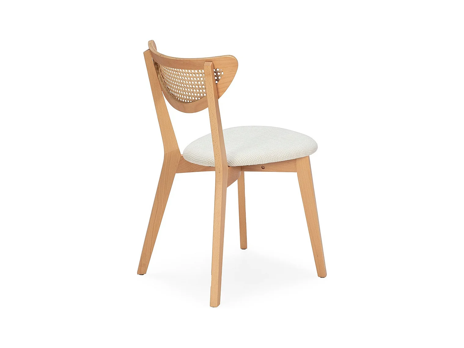 BOVIA houten stoel van rotan en witte stof – natuurlijke stijl
