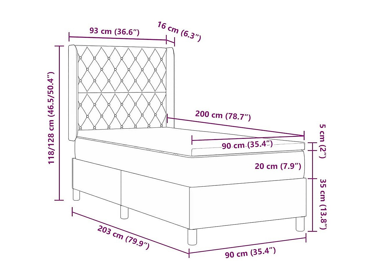 Boxspringbed met Matras met matras Donkergrijs 90 x 200 cm Stof