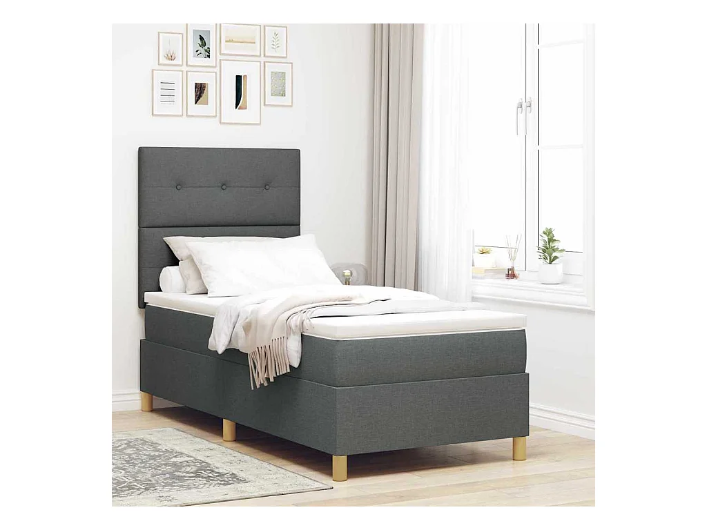 Boxspring bed met matras Donkergrijs 100 x 200 cm Stof
