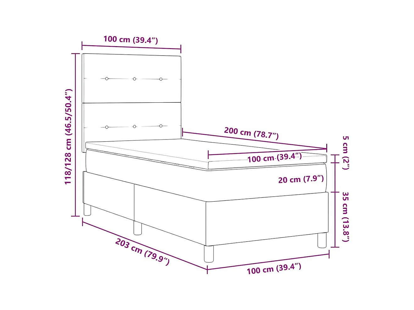 Boxspringbed met matras Donkergrijs 100 x 200 cm Stof