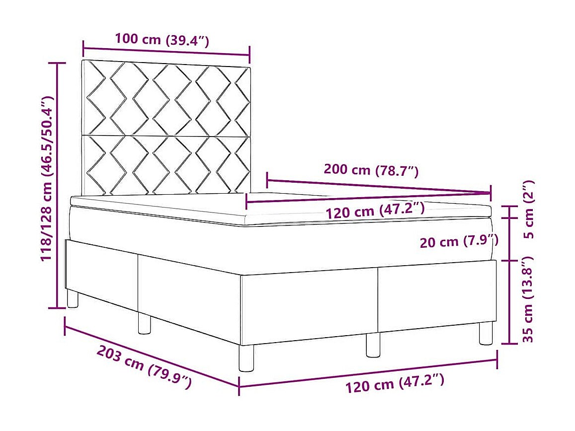 Boxspring bed met hoofdeinde Donkergrijs 120 x 200 cm Stof