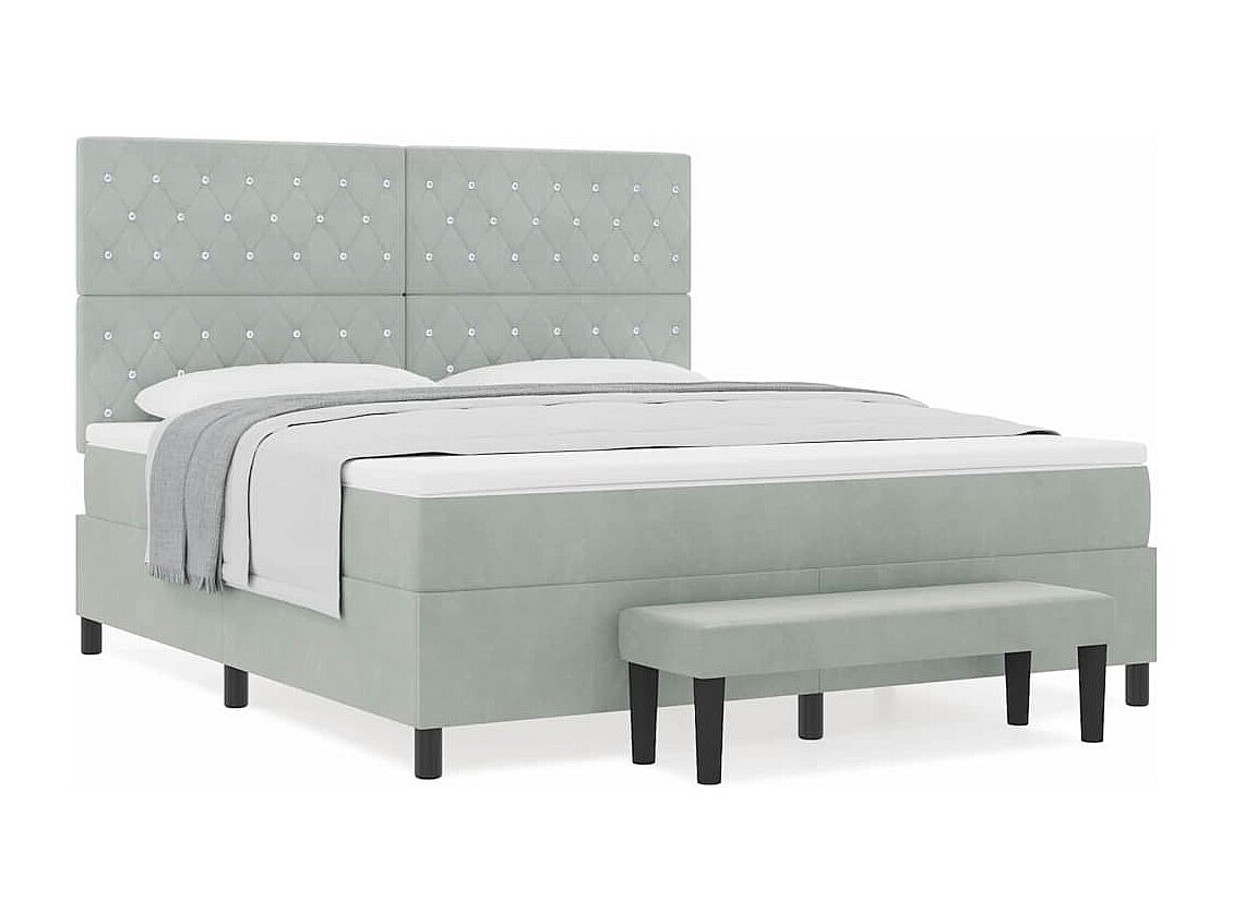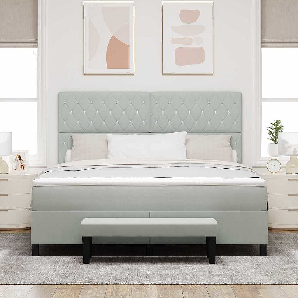 Boxspring met matras fluweel lichtgrijs 180x200 cm