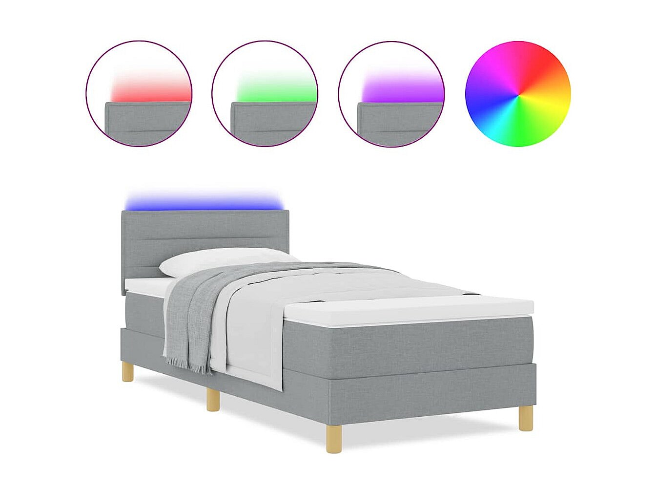 Bed poef met matras en LED's 90x200 cm stof lichtgrijs